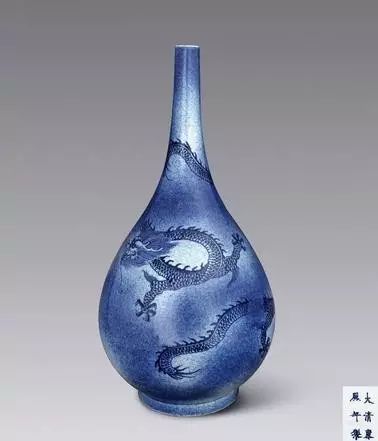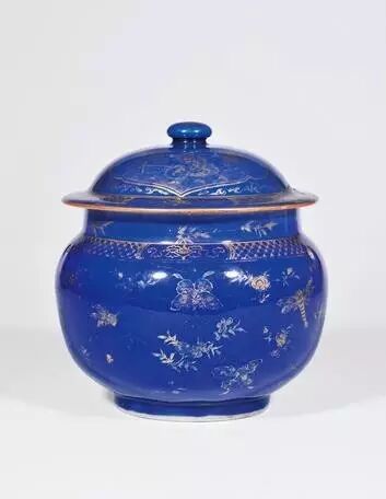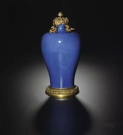直到清代康熙时期,洒蓝釉才又恢复生产。康熙、雍正、乾隆时期的洒蓝釉瓷器呈色稳定,做工精细,很多辅以金彩装饰,也有少量辅以五彩和釉里红装饰。