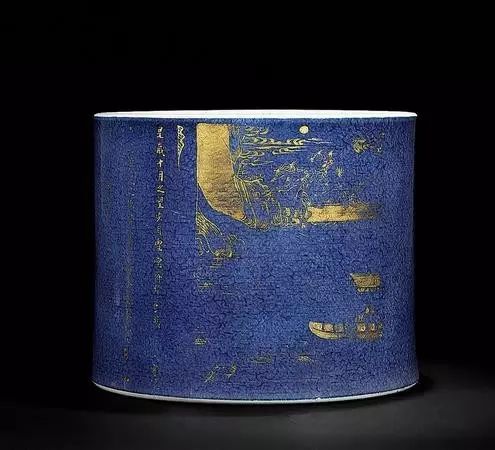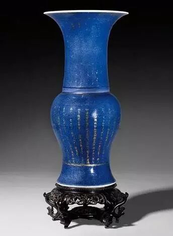 清 康熙 洒蓝釉描金赤壁赋花觚