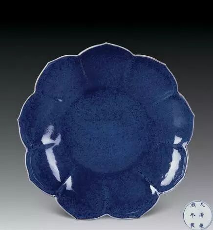 清康熙 洒蓝釉莲花口盘