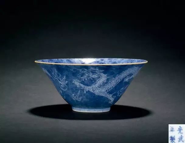 清光绪 洒蓝釉留白龙纹碗