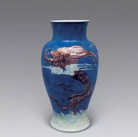 清康熙 洒蓝釉龙纹胆瓶