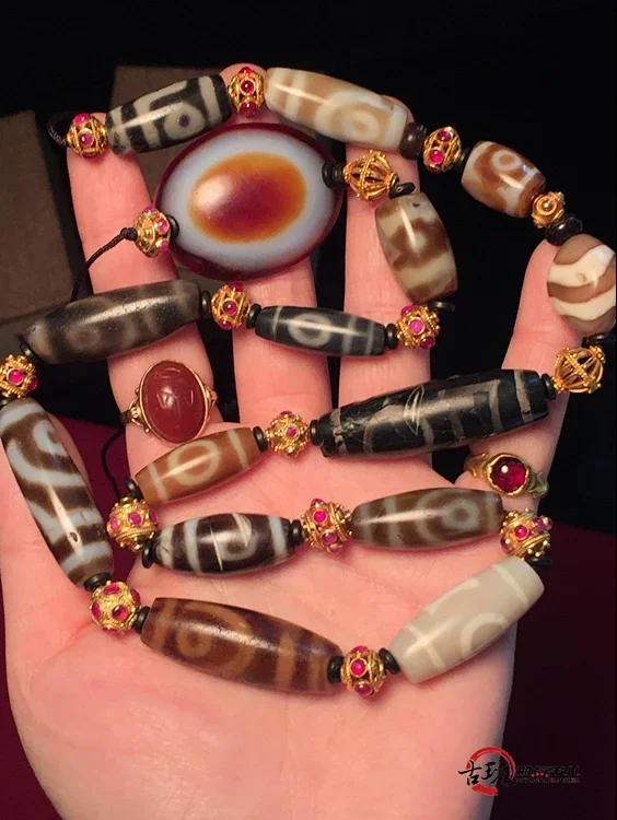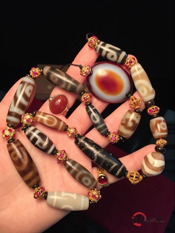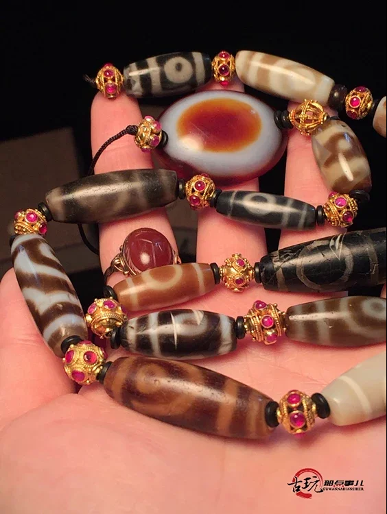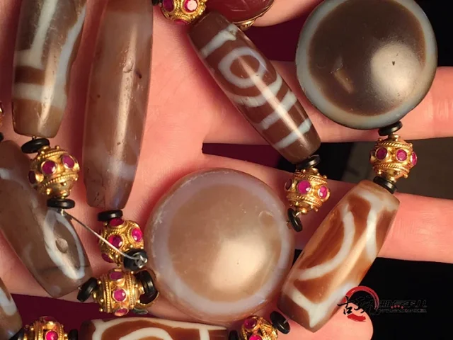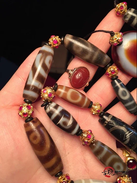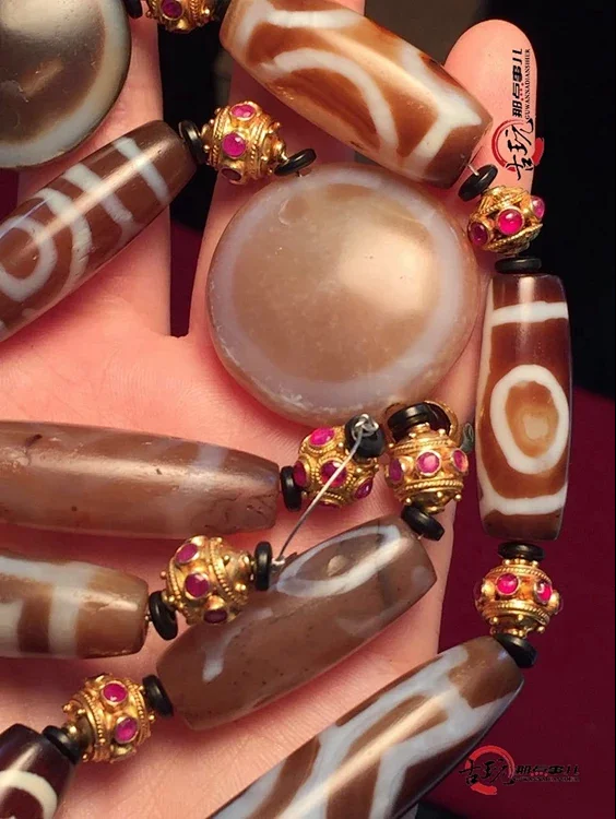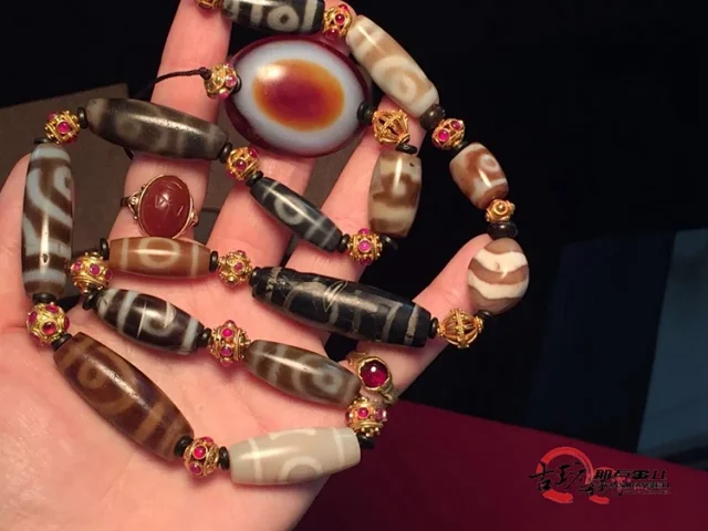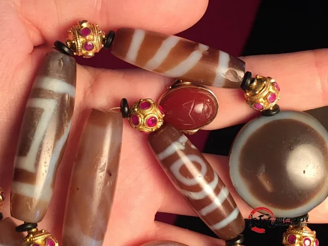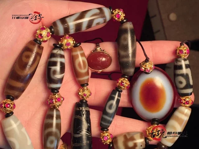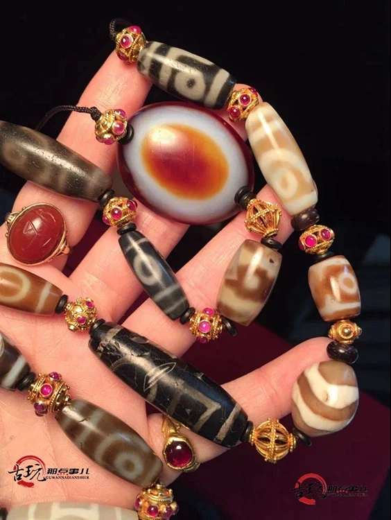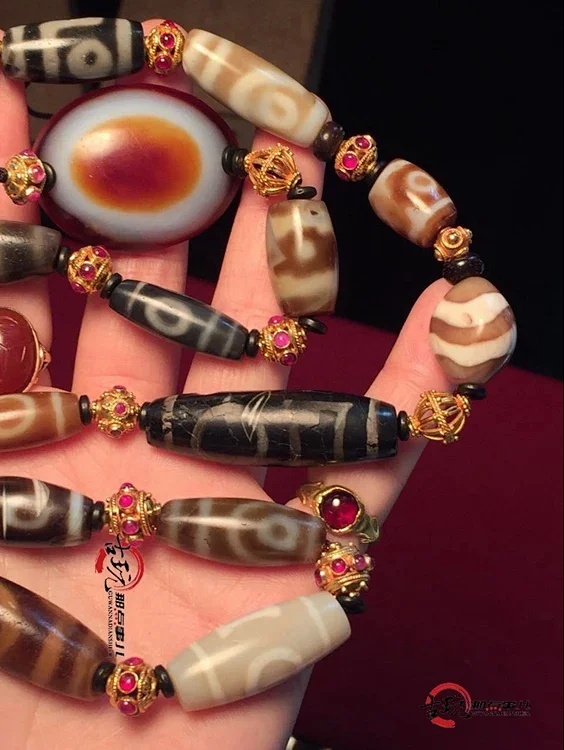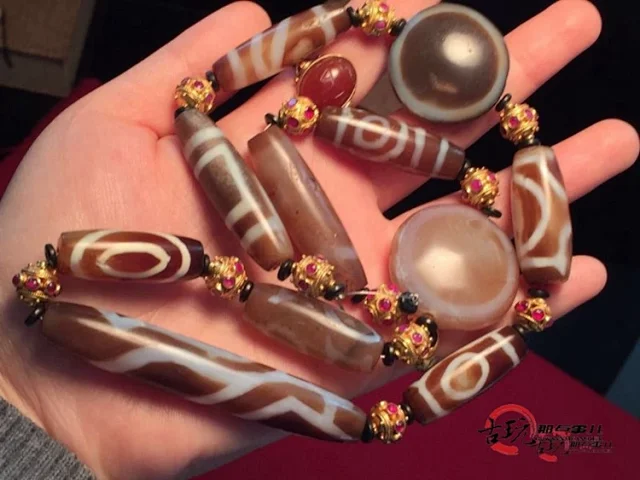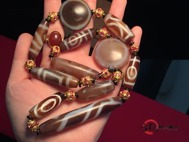 天珠的藏语发音为(DZI),为美好、威德、财富之意,每颗千年至纯天珠的图腾都蕴含神秘的加持力,是最具神秘加持力的佛门圣物,非佛缘深厚福报巨大之人难以见之、得之。成书于千年前的《新唐书》讲述了公元618年至907年间的历史,其中记载:“土蕃妇人辫发,戴瑟瑟珠,云珠之好者,一珠而易五十良马。”其意思直接表明,在唐代一颗天珠可换得良马50匹,可见天珠在唐代已极其尊贵,直到今天,藏族朋友们仍然可以将古老纯正的天珠拿到西藏人民银行或者拉萨市八廓街城市信用社做金融抵押贷款,甚至还能直接当做现金来买房子、买牲口。![]()