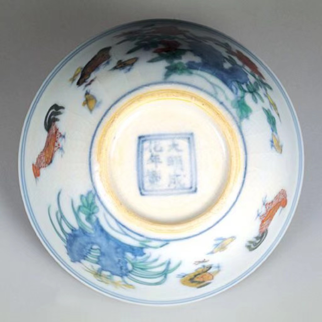 成窑五彩,即明代成化年间官窑所出的五彩瓷器。成化五彩传世品罕见,收藏价值极高。我们所熟知的明成化斗彩鸡缸杯,在2014年苏富比香港春拍上以2.8亿港元成交,自此,成化斗彩鸡缸杯被封神。