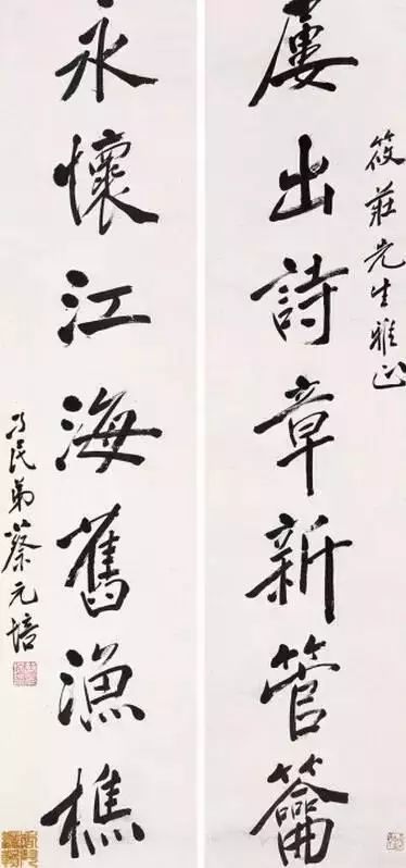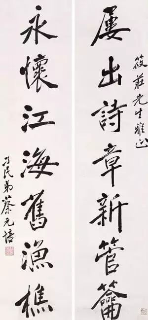 蔡元培的书法在很多专业人来看,并不算特别突出,但蔡先生深厚的旧学基础、渊博的学识修养,再加之其开阔的艺术思想,体现于他的字里行间,尤其是一些行草书的诗词和尺犊手稿,就有一种自然挺秀、蕴藉清新的气息。他的书法,是亦旧亦新、自有法度于其中的。