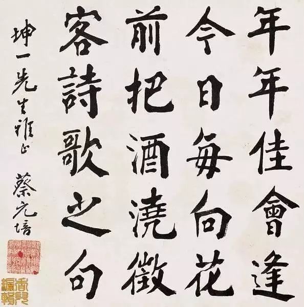 心理学上,看一个人的字迹可以读出很多东西来,热情的人字粗大,专注的人字细小,正直的人字简洁,高傲的人字花怪,性急的人字潦草,多情的人字软弱,孤僻的人字紧凑……而在蔡元培先生的字中我们读出的是一种亦旧亦新、兼容并包的运笔风格与待人处事的态度。看字如看人,真真是字如其人!