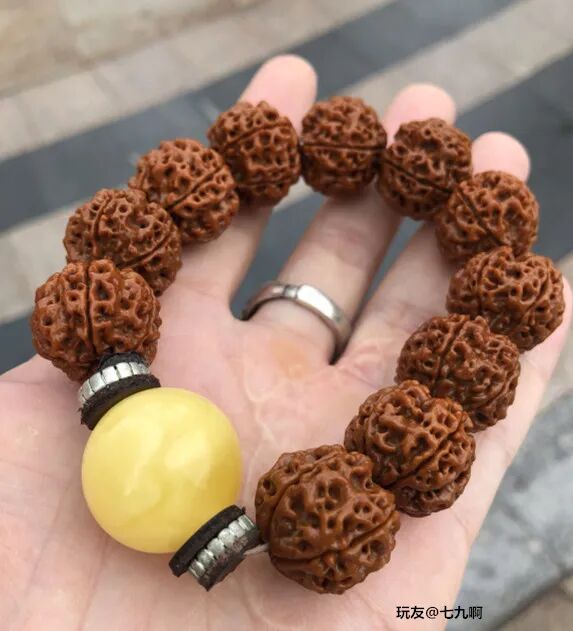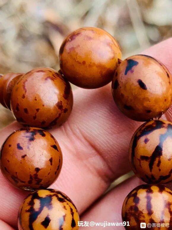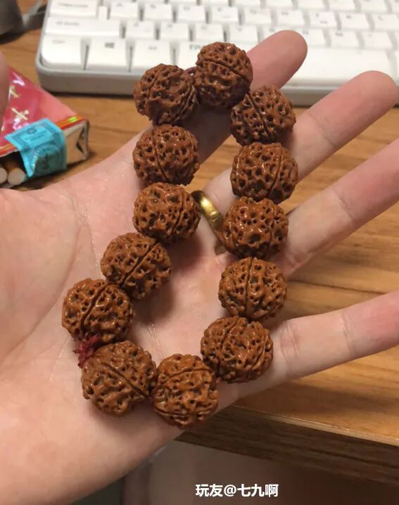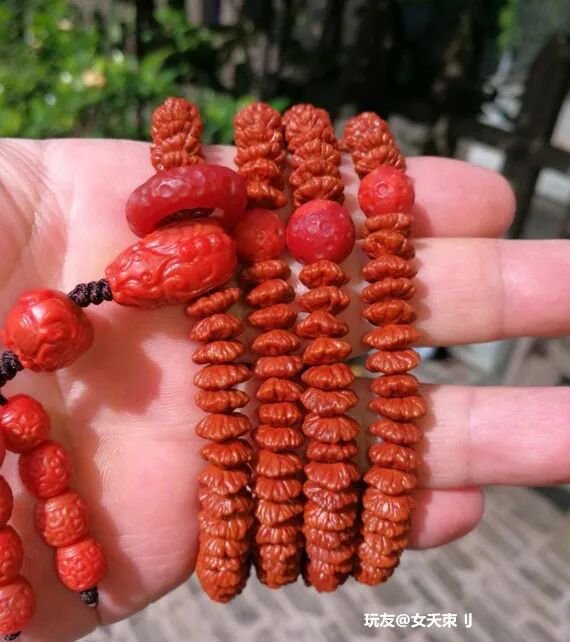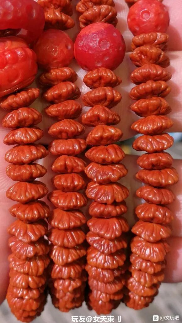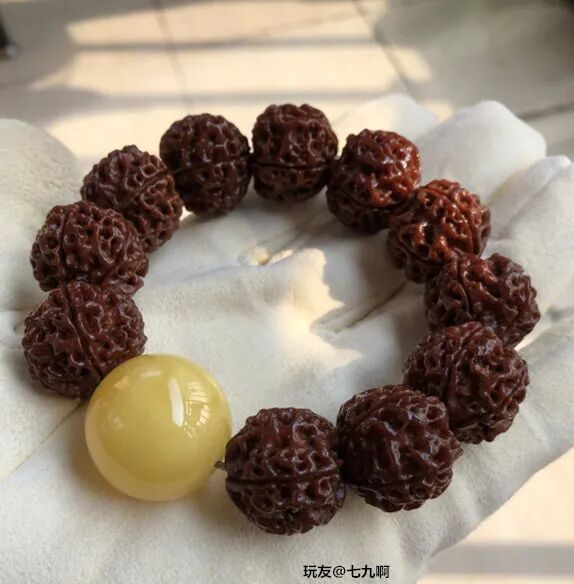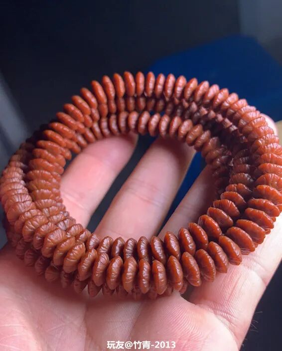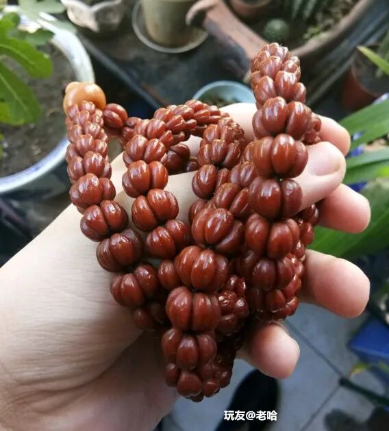经常有玩家诉苦:“我这条手串盘了三个月了,怎么还不包浆?”“坚持了大半年了,还没盘出来,不想盘了。”......盘串,本来就是一个静下心来,耐着性子慢慢盘的过程。不管是啥样的手串,就是条塑料,只要你盘,时间够久,它也能包浆!不信你看▼很多人对小众菩提嗤之以鼻,觉得都是无名小辈,没有啥盘的必要,但又有人玩出来,而且包浆很漂亮!金叶莲花,产自佛教圣地安徽九华山,是青钱柳的种子,多生长在各大寺庙旁边。由于它形似铜钱,寓意财源滚滚;细看又有点像莲花,因此被叫做金叶莲花菩提。金叶莲花菩提是一种非常小众的菩提,在文玩圈里没有那么流行,玩的人很少。如果因为不出名就错过它,那肯定是一种遗憾。玩友@女夭束刂有一条金叶莲花,坚持盘了五年,这红润的包浆,坚持跟南红的红艳不相上下。之前莲花菩提和滴血莲花炒起来的时候,很多人都跟风入坑,后来发现被坑了,纷纷弃坑。但也有玩家抱着万物皆可盘的心态,坚持盘玩,最后盘玩的效果也不错。像这些小众文玩,判断它能不能盘,还是要从它本身出发,不要盲目跟风。哪怕像那种没什么人听过的小众文玩,只要你能坚持盘玩,也能收获意想不到的惊喜。在文玩人眼中,万物皆可盘!桃核、杏核、山核桃等等,都能做成手串玩一玩。但是这些吃出来的手串,很多人盘着盘着就不知道去哪儿了。可能是太容易得到,成本太低,不太珍惜吧。不过,还真有人坚持,玩出来的也不错。比如,山楂核,在DIY文玩中颇有名气,每年都会有玩家让老盘写制作山楂核手串的攻略,每年也都有玩家纷纷晒出了自己制作的成果。但是,然后呢?