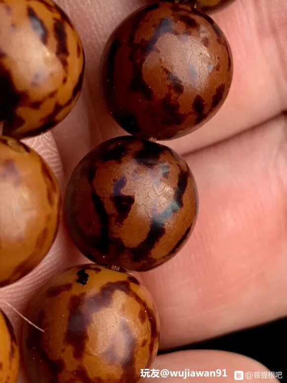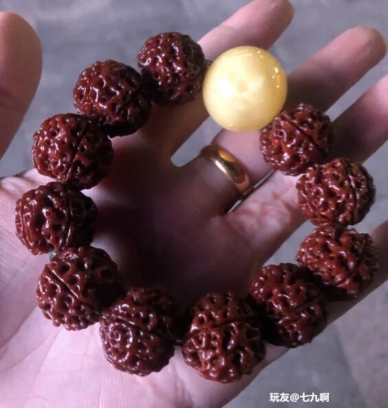 至于以后落地红会变成什么样,现在还不好说,但至少有人坚持去盘了,这种精神本身就值得嘉奖。有些手串说出来名字,就是便宜的代名词,比如菩提根,比如象牙果!可能因为太过便宜了,所以在底层也备受冷眼。但是,总有人不在乎,也能玩出来。比如菩提根,菩提根在文玩圈中算是一种比较寡淡的文玩,价格便宜,容易脏,变色也算不上好看,密度也不太行,容易开片。纵然盘玩如此寡淡,还是有人耐着性子把菩提根盘出了蜜蜡的既视感。有时候检验一个人盘串的能力,不是看他能把价格不菲的、好玩的、漂亮的文玩盘成什么样,而是要去看他能把便宜的、寡淡的、变色慢、难包浆的手串盘成什么样。如果你能把菩提根盘得很漂亮,那你不骄不躁的盘串心态,值得点赞。文玩无贵贱,贵贱在人心。一条手串,有人弃之如敝履,有人待之如珍宝。各取所得,各得所爱!所以,那些什么鄙视链,优越感啥的,别太当回事儿!
