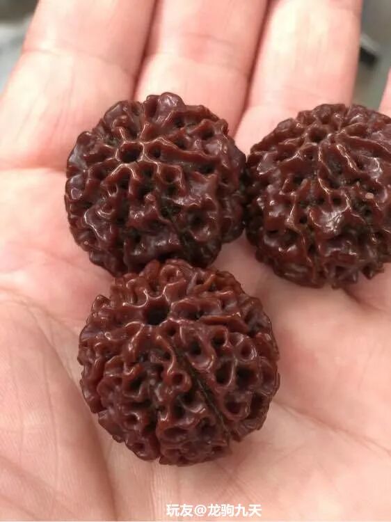 说到落地红,不知多少玩家曾经吃过它的亏。比如玩友@yzmsjsj,曾经在2014年前后,买了一对落地红当核桃玩,花了1300,当时被喷惨了。“我不相信落地红玩出来没金刚漂亮。”拧着一股劲,玩了3年后,他手中的落地红也玩出了包浆。