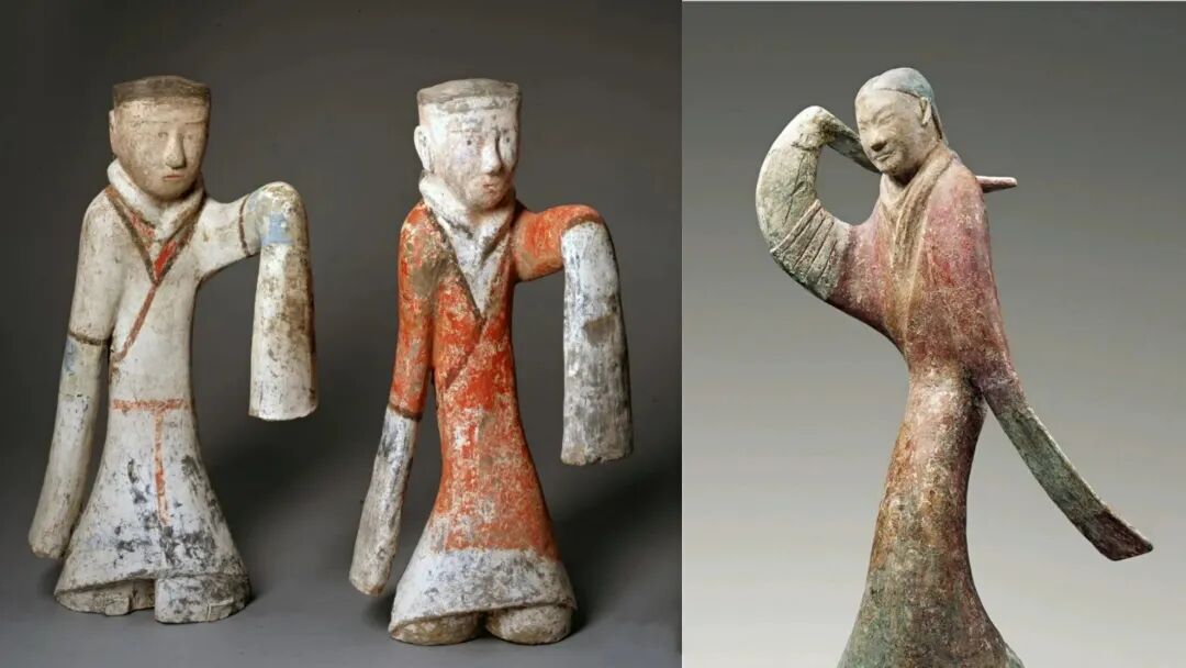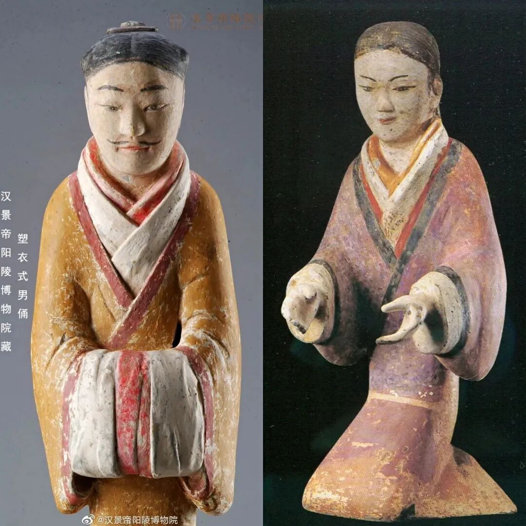 值得一提的是,在穿法上,梅长苏的斗篷也与常见穿法不同。他采用的是双肩包式的穿法:将斗篷的带子从腋下穿过,在背后固定。这样才能让斗篷稳稳搭在肩上。这种穿法在武将的穿搭中比较常见,一般是将斗篷和盔甲固定在一起。我们在古装剧中总能看到束发的男性角色,并因此觉得古人会扎好“丸子头”啥也不戴就直接出门了。但事实上,古代的成年男子极少将发髻赤裸的展示出来,越是有身份的人,就越不会这么做。从兵马俑的形象可见,自秦时起,稍有身份的男子就已经开始包头发了。魏晋时期放浪形骸的代表人物“竹林七贤”,连衣服都不好好穿了,头发却还裹得一丝不苟。而且,古代男子还会像包礼物一样,在发髻外面戴不止一层东西。以明代为例,哪怕是日常的装束,都要先戴束发冠,再戴上巾。明代还流行一种整理发髻用的网巾,也是戴在冠帽里面的。到了清代,男性都开始剃发,除了道士之外就没人束发了,但这一时期的道士们一般也不会以裸髻示人。小时候看古装剧,你是否有过这样的疑惑:为什么古人穿长袍大袖,袖子里放的东西却不会掉下来?古人的袖子的确是很长的,这一点在陶俑和古画上都有体现,毋庸置疑。但在宽度上,虽然比现代要宽,但远不及电视剧中那么夸张。宽袍大袖虽然仙气飘飘,但确实非常不方便,即使是不事生产的古代贵族一般也不会穿袖子这么大的衣服。早期古装剧中经常出现从袖子里掏银子或银票买东西的情节,这在古代其实是很少见的。
