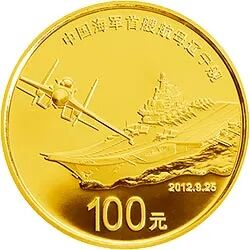 2012年辽宁号成功下水后,当年12月28日,中国人民银行就发行了中国海军航母辽宁舰金银纪念币,金、银币各2枚。