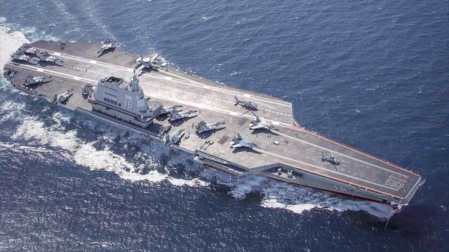 2017年,我国第一艘自主设计建造的航空母舰“山东舰”正式下水,但是采用滑跃式起飞,只能算“入门”;