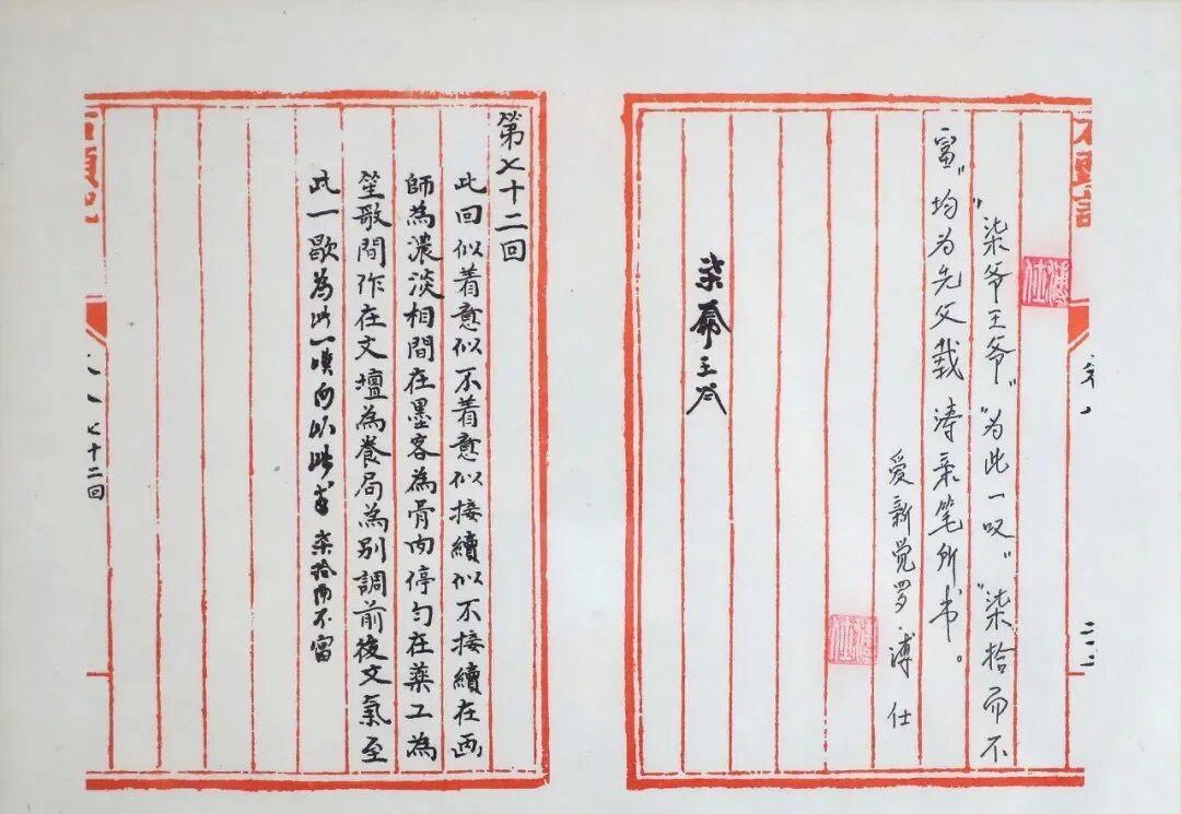 戚序本的整理情况是较为复杂的,文字有较大幅度的改动,而原先的眉批、旁批也都被整理抄写成双行夹批或前回后批汇入正文,并删去了原署的年月、名号,致使古今批语混杂其中,且存在较多的音讹形误。鲁迅先生1912年5月购买过一本戚序本《红楼梦》,他于1921年编印《小说史大略》时摒弃了程本而以戚序本为为引文底本,这当然有一部分原因出自于历史限制,毕竟此时甲戌本等早期抄本尚未现世,但从鲁迅先生的选择上来看,他还是更为推崇戚序本,认同戚序本要比当时仍为主流的程高本更为接近小说原貌的。