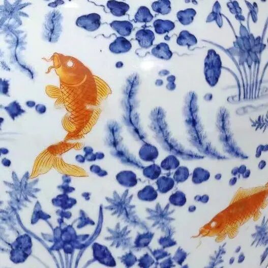 宣德时期的釉面普遍呈现一种高低不平的类似橘皮状釉面,其上遍布棕眼,观之颇具厚重之感。这源于瓷器在烧造时所形成的气孔,因其釉里富含碱金属氧化物,这种釉高温黏度大,冷却过程较慢,流动性差,或釉层太薄,或釉层不均匀,或烧成温度过低,使釉熔化不良,或烧成时冷却过慢,造成釉面析晶,或坯体表面修整不善,釉不足以弥补坯体表面的不平等,都是造成此种橘皮釉的原因。