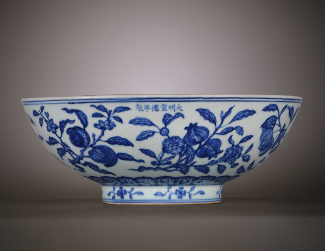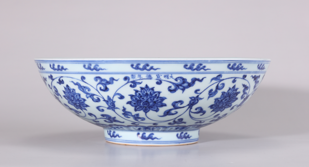 洪武年间在江西景德镇设立御器厂以后,至永宣时期御窑制度则更加完备,由督陶官集中全国最优秀的匠人,垄断最优质的钴料、瓷土,不惜工本的开始大规模烧造活动。宣德青花经元及明早期发展沉淀,达到顶峰。其成就被称颂为“开一代未有之奇”。《景德镇陶录》评价宣德瓷器:“诸料悉精,青花最贵。”宣德青花烧造数量也是空前的,据《大明会典》记载,宣德八年(1433)朝廷一次就下达了要景德镇烧造各样瓷器443500件的任务,其中青花占大多数。产品不仅以供宫廷所需,而且也作大量赏赉海外王室贵族,成为东西方交流的见证。