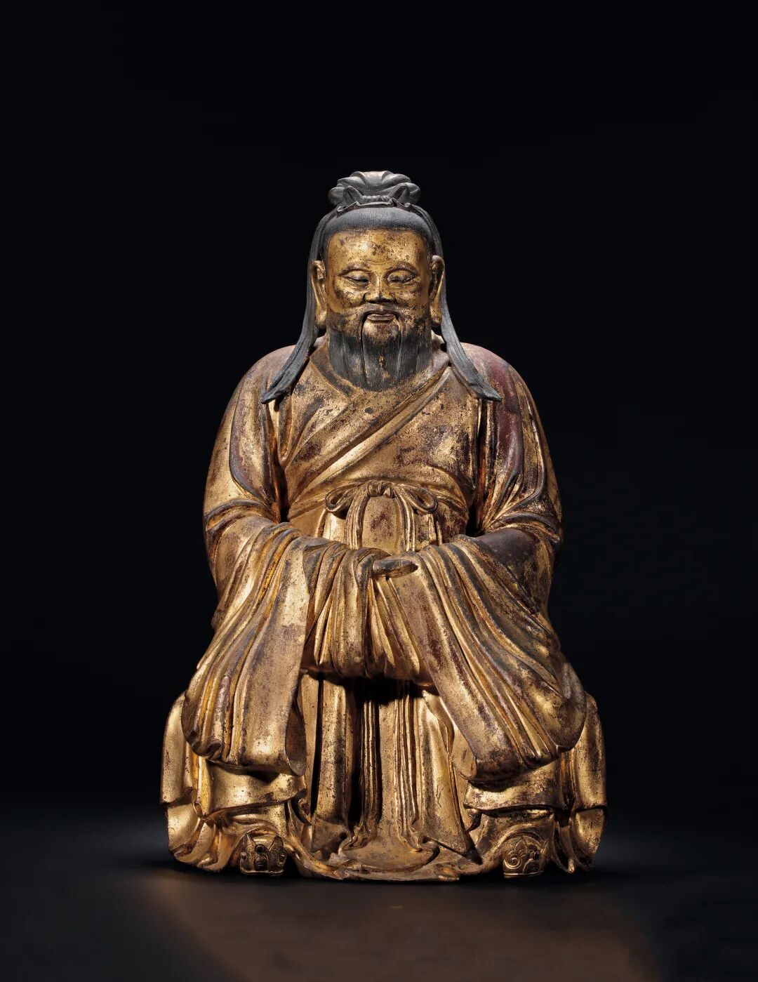 明中期 銅漆金孔子像