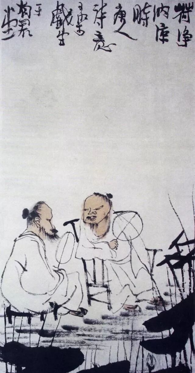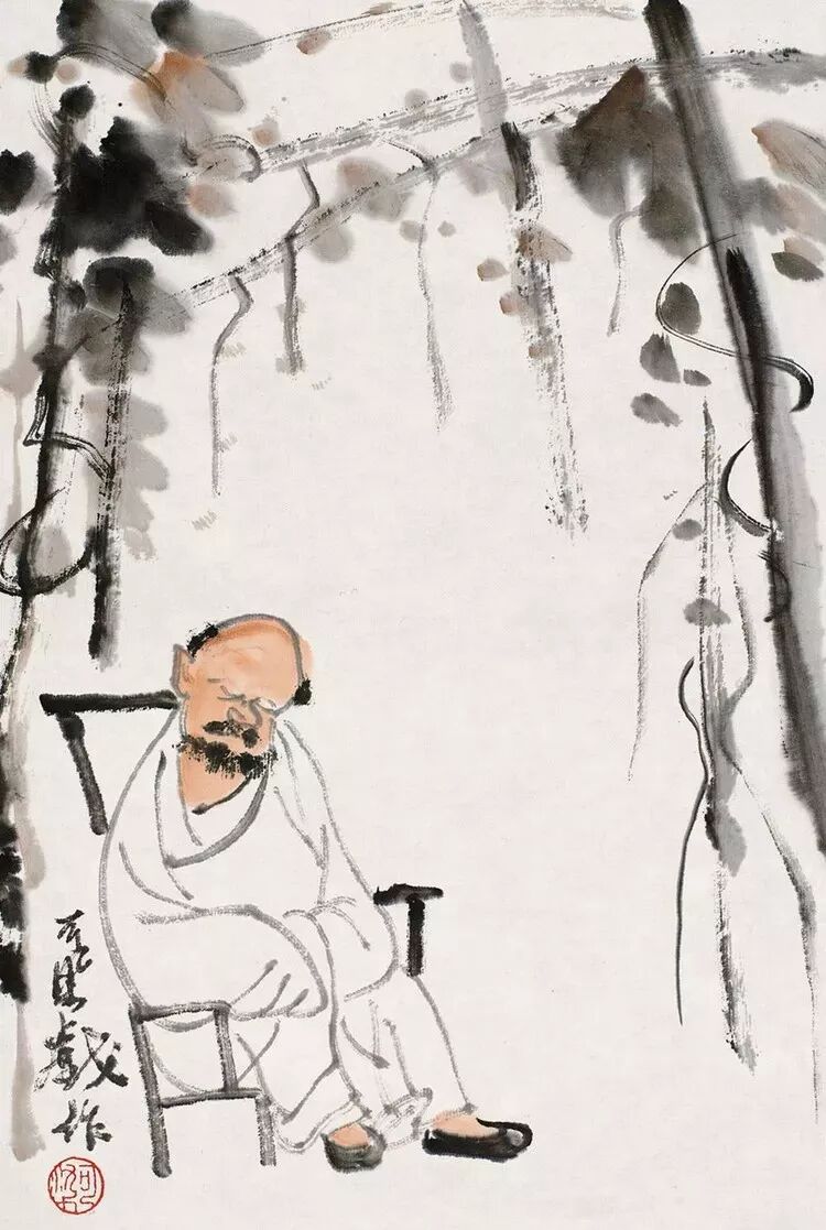 李可染画一幅写意人物《瓜架老人图》回赠老师,画的是一位老人在瓜架下乘凉打盹,整幅画超脱秀逸,卓尔不群。齐师看后,连连称赞,题句曰:“可染弟画此幅,作为青藤图可矣。若使青藤老人自为之,恐无此超逸也。”