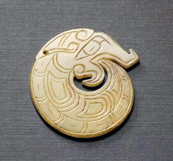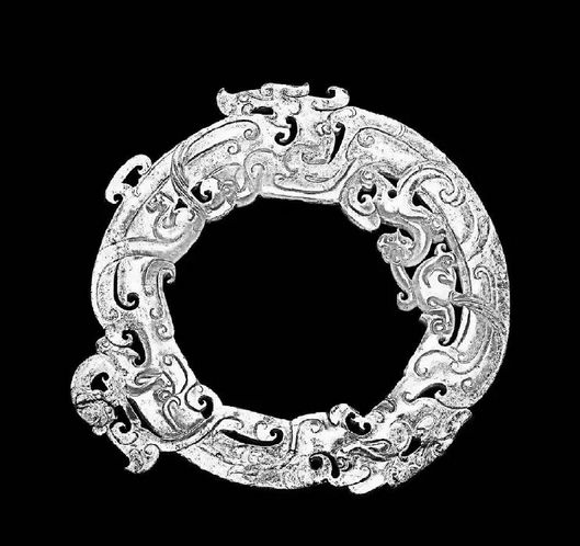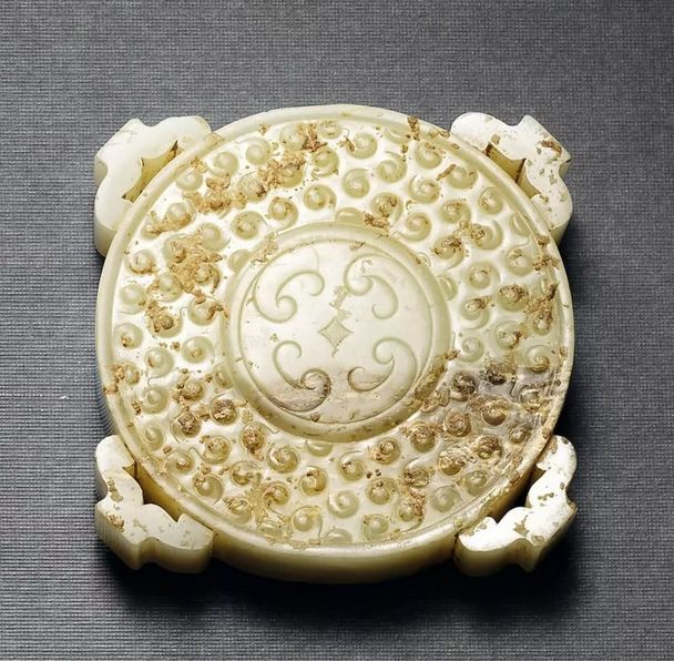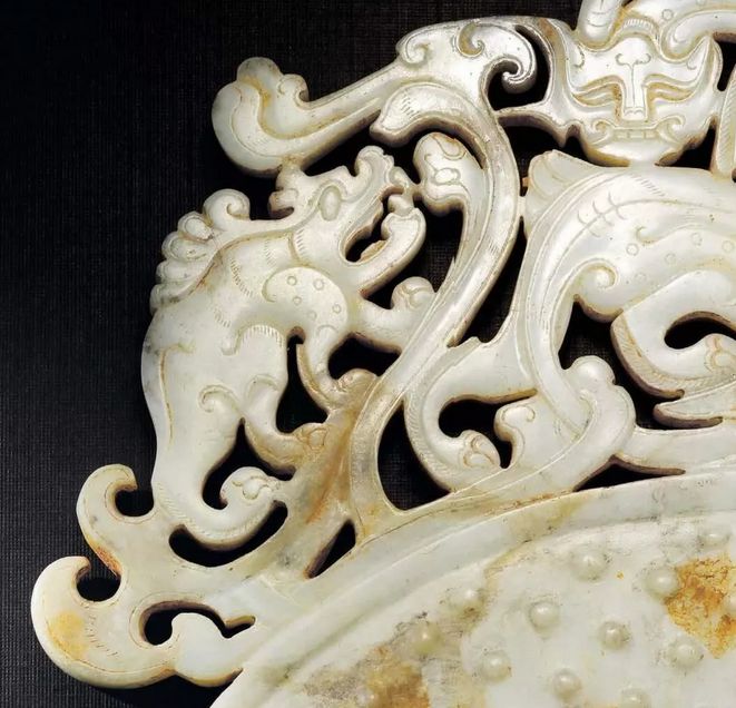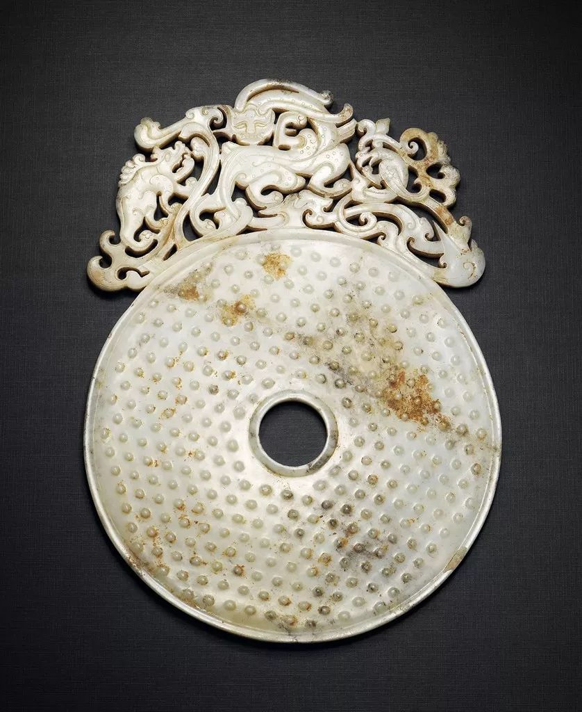 东汉 白玉乳丁螭虎瑞兽纹出廓璧(213万)
