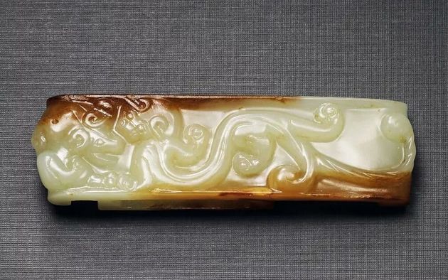 汉 褐白玉龙熊纹剑璏(37.5万)