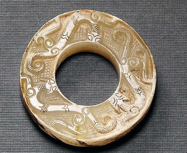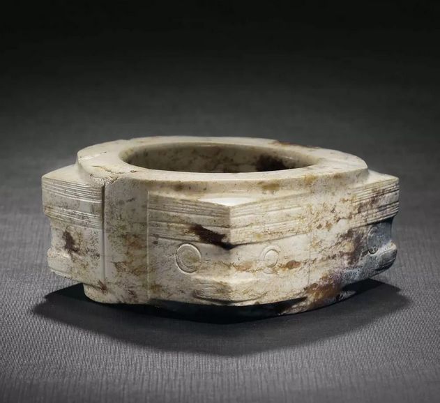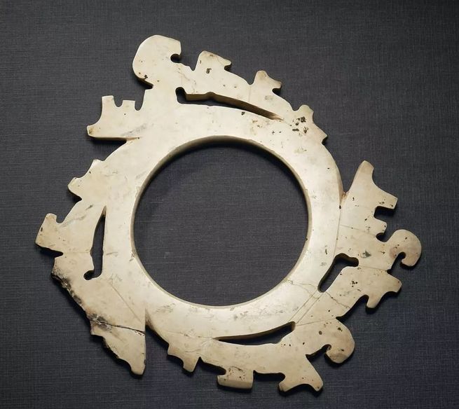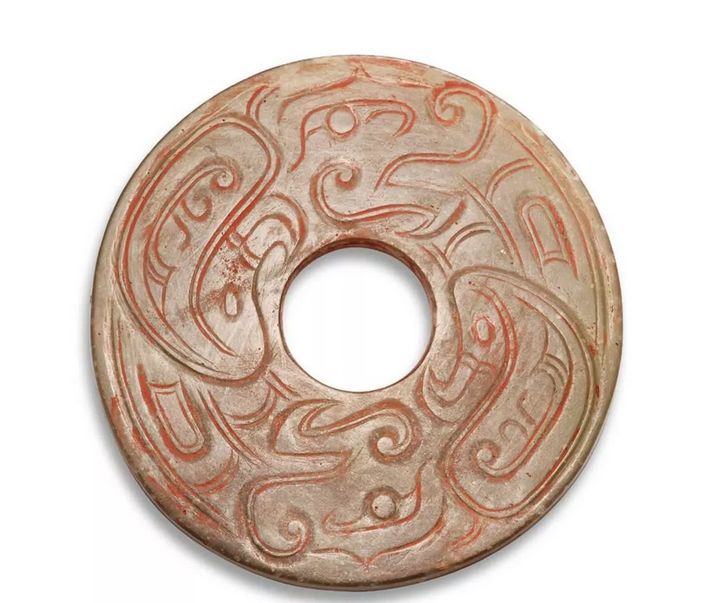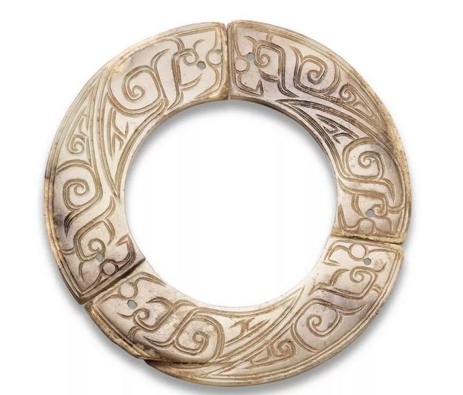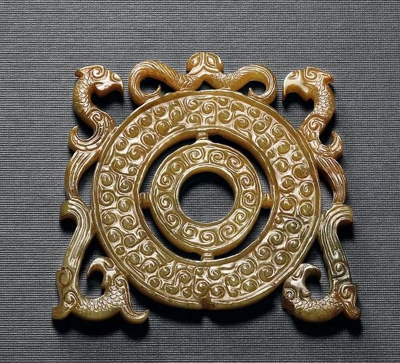 龙山文化 青玉镂空鸟纹出廓牙璧(298万)