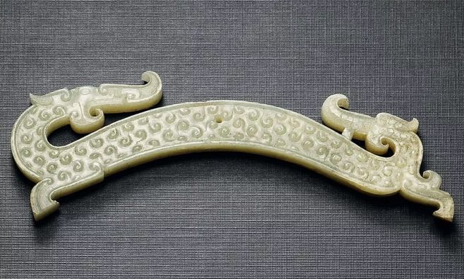 春秋 青玉龙纹璜形佩一对(187.5万)