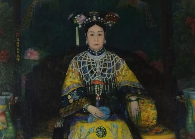 美国女画家柯尔为慈禧太后画的油画 慈禧太后留下了很多珍贵的老照片,遗憾的是均为黑白相片,不能完美的展现出其身上名贵的珠宝,毕竟翡翠色差一点,价差一等呢。从这张写实油画来看,老佛爷手上的一对翡翠手镯和戒指色泽浓艳、呈满绿色,很可能是从同一块原石上抠下来的哦~