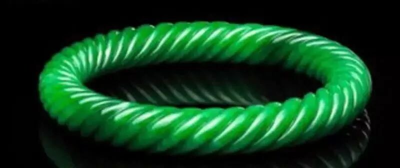 一直到清朝以后,这样的绳纹手镯还在生产加工,如宋美龄这款爱不释手的满绿绞丝对镯。