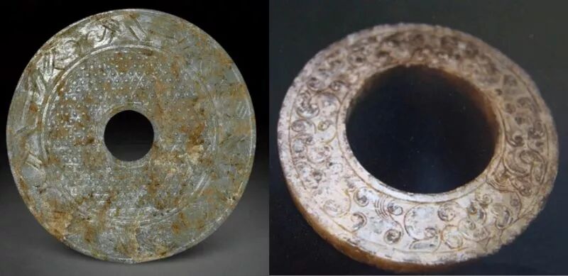 左图为玉璧,壁大于孔;右图为玉瑗,孔大于壁