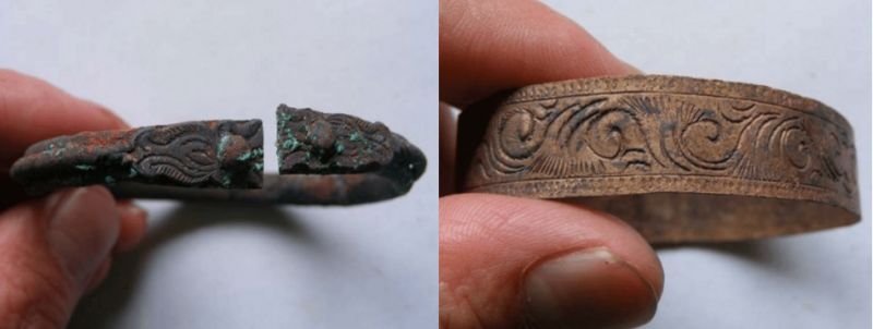 元代的手镯出现了以浅浮雕为主的装饰手法,虽然装饰性越来越浓烈直白,但是整体的艺术效果和加工特征还是以质朴为主。