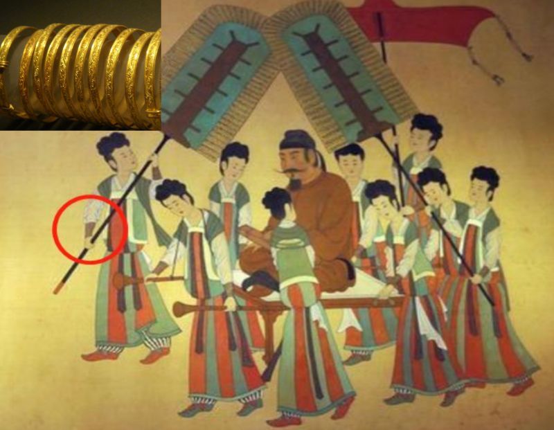 阎立本的《步辇图》中的打扇仕女佩戴臂钏