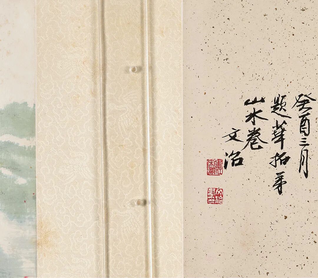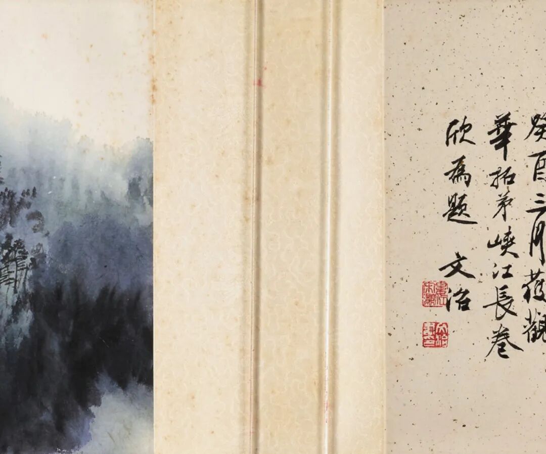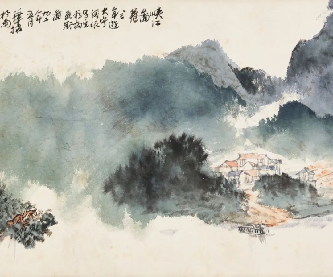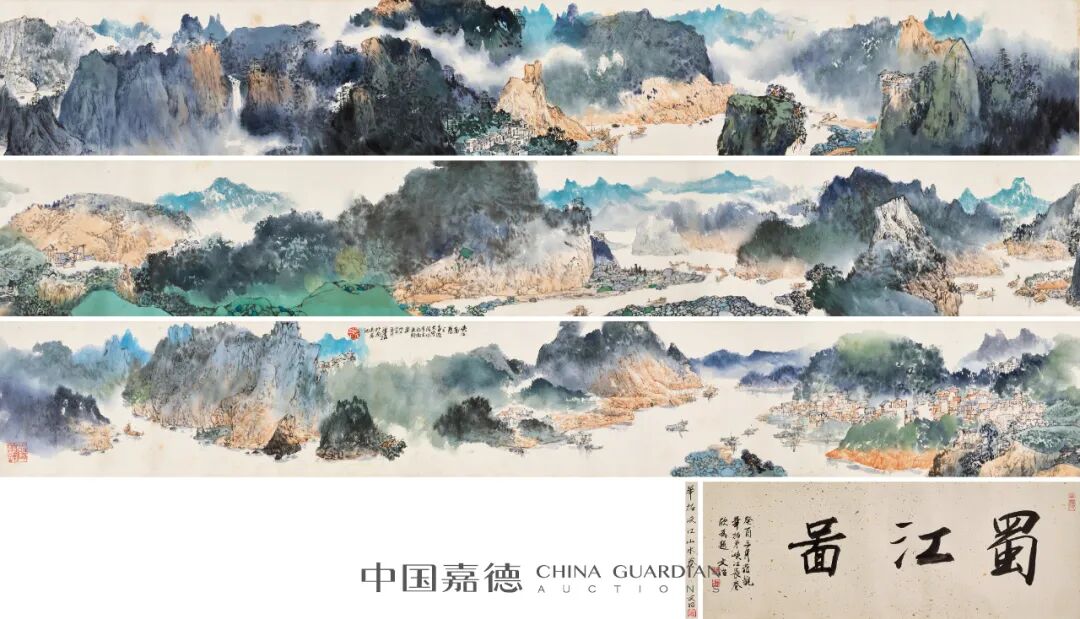 宋文治题引首:蜀江图。癸酉(1993年)三月,获观华拓弟峡江长卷欣为题。文治。 钤印:娄江宋灏、文治书印、九十年代