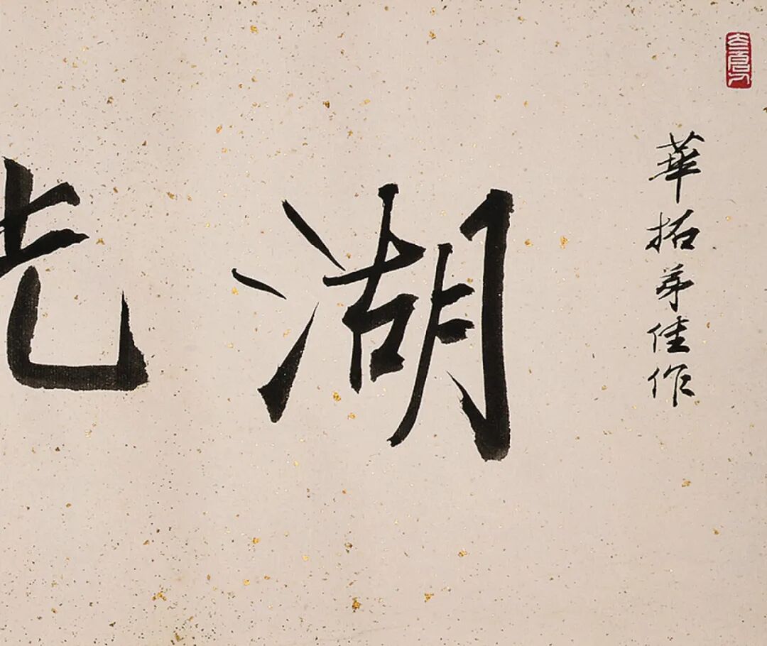 宋文治(1919-1999)题签条:华拓太湖长卷精品。文治。 钤印:文治