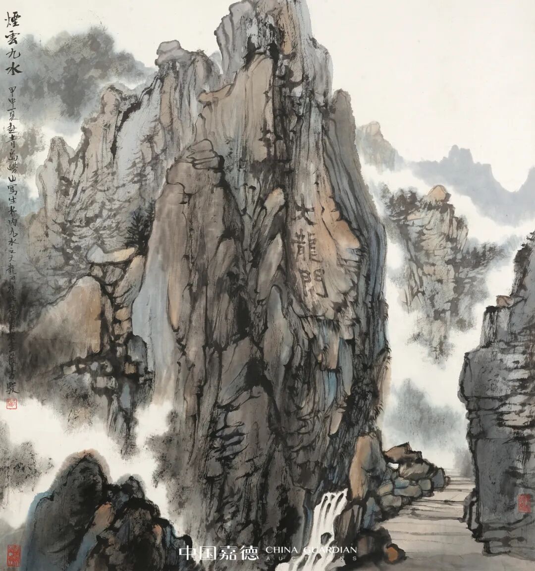 题识:烟云九水。甲申夏赴青岛崂山写生,于内九水之大龙门得此稿,画于金陵,方骏。