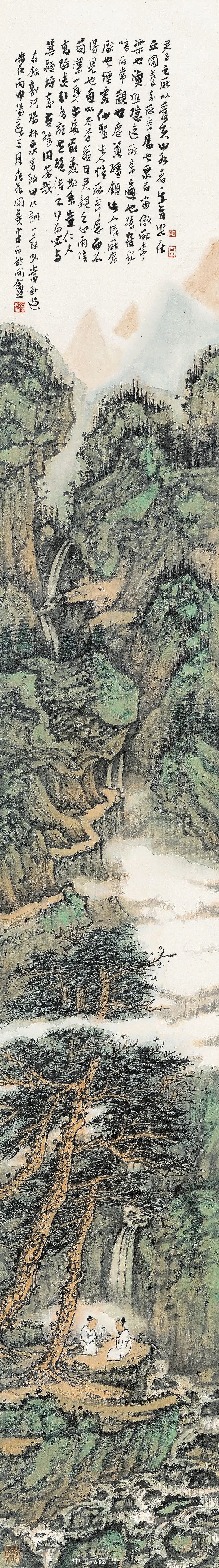 题跋:本幅宋文治(1919-1999)题:山寨夏瀑。癸酉(1993年)三月,华拓画张界风光,文治题。 钤印:娄江宋灏、娄东文治