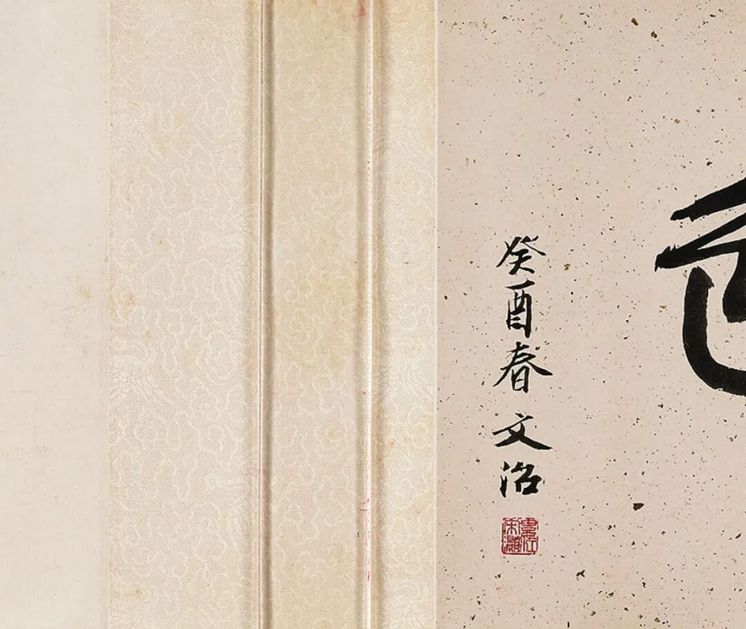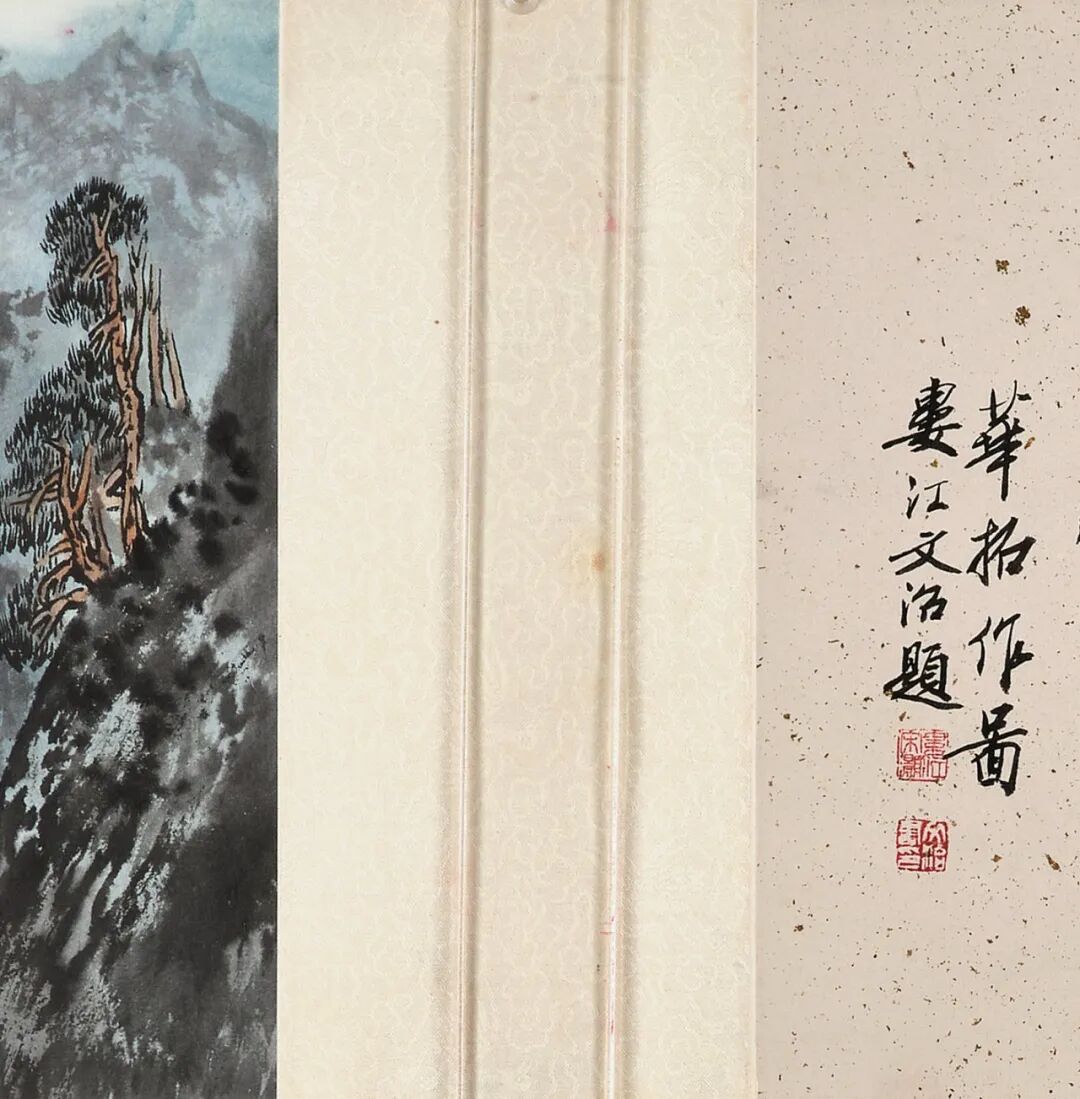 宋文治(1919-1999)题签条:华拓祁连山长卷。文治。 钤印:文治