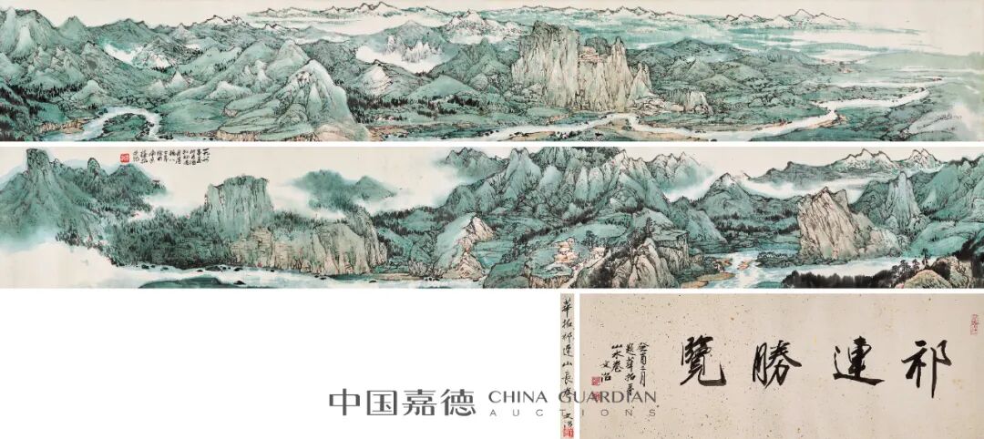 宋文治题引首:祁连胜览。癸酉三月,题华拓弟山水卷。文治。 钤印:娄江宋灏、文治书印、九十年代