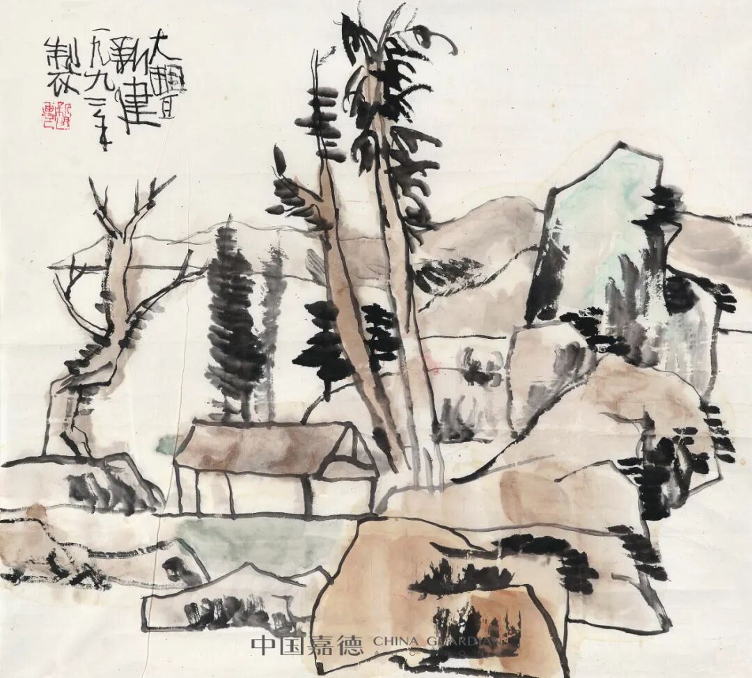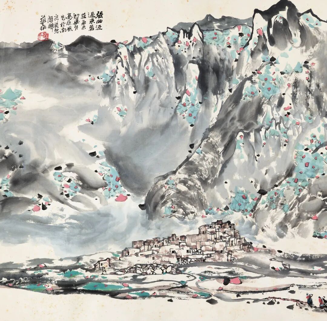 题识:一九八四年夏访青海,于祁连县得稿,八七年绘于南京,华拓并记。