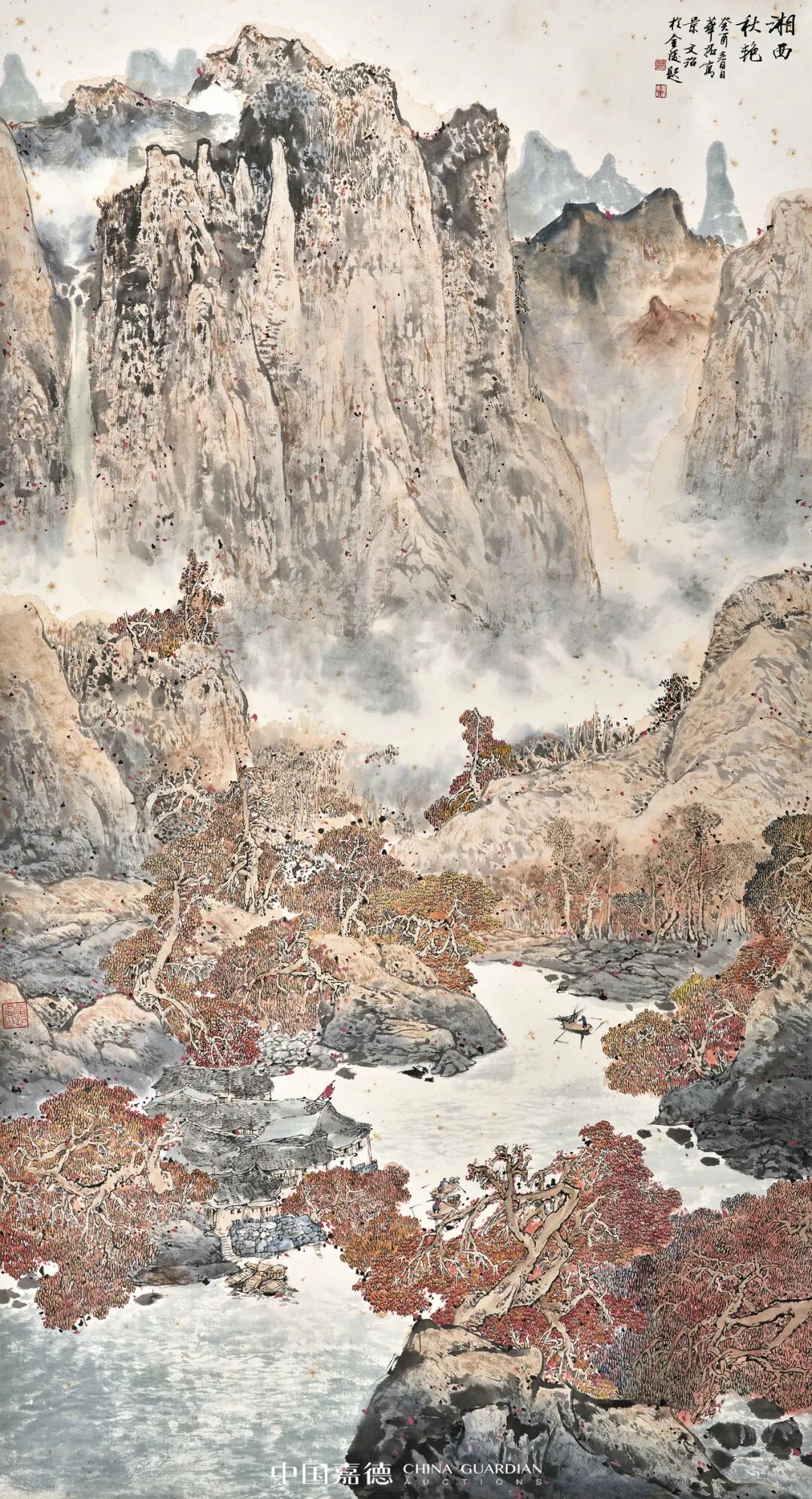 题跋:本幅宋文治(1919-1999)题:湘西秋艳。癸酉(1993年)春日,华拓写景,文治于金陵题。 钤印:娄江宋灏、娄东文治