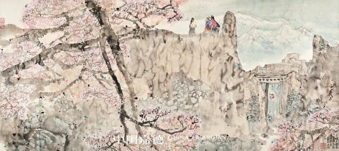 题跋:本幅宋文治(1919-1999)题:武岭春色。癸酉(1993年)三月华拓作图,娄江文治于金陵松石斋题。 钤印:娄江宋灏、娄东文治