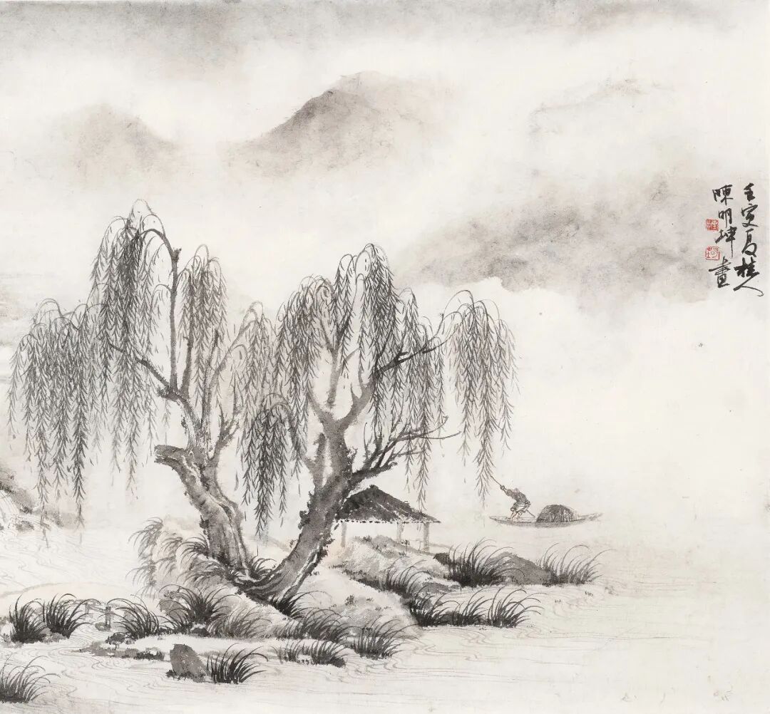 题识:自锄明月种梅花。壬寅二月初二画于紫金山麓。姚媛。