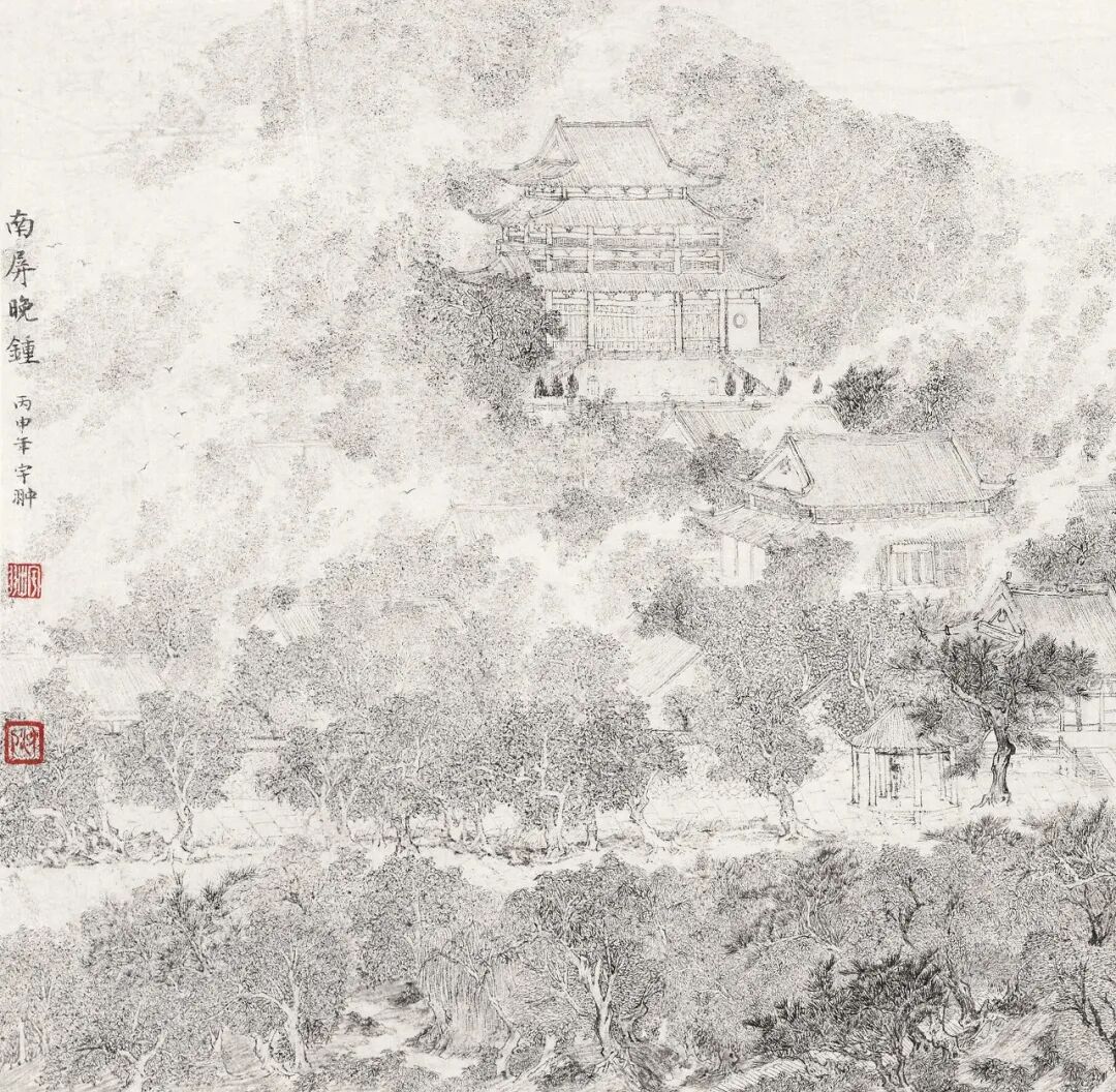 题识:晚日金陵岸草平,落霞明,水无情。六代繁华,暗逐逝波声。空有姑苏台上月,如西子镜照江城。大丰新建一九九二年客在巴黎。