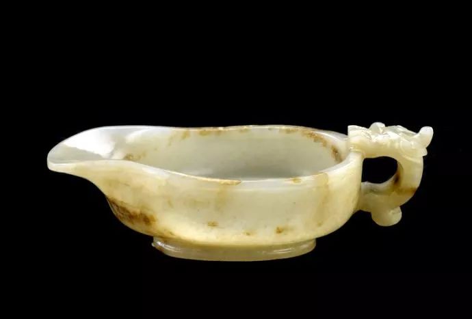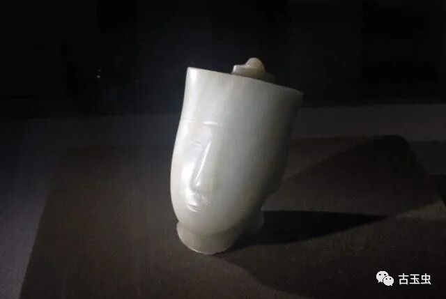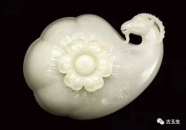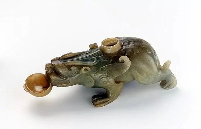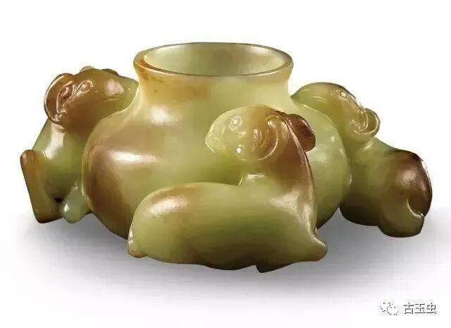 白玉痕都斯坦式瓜棱式羊首盃(乾隆)
