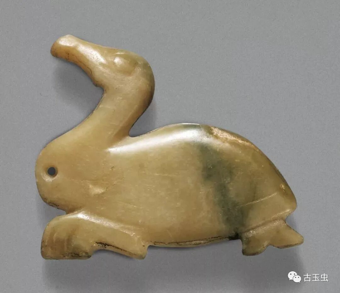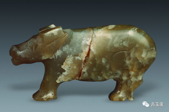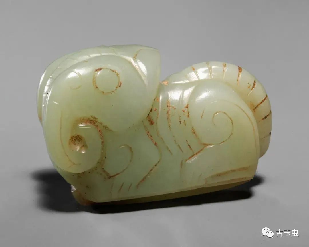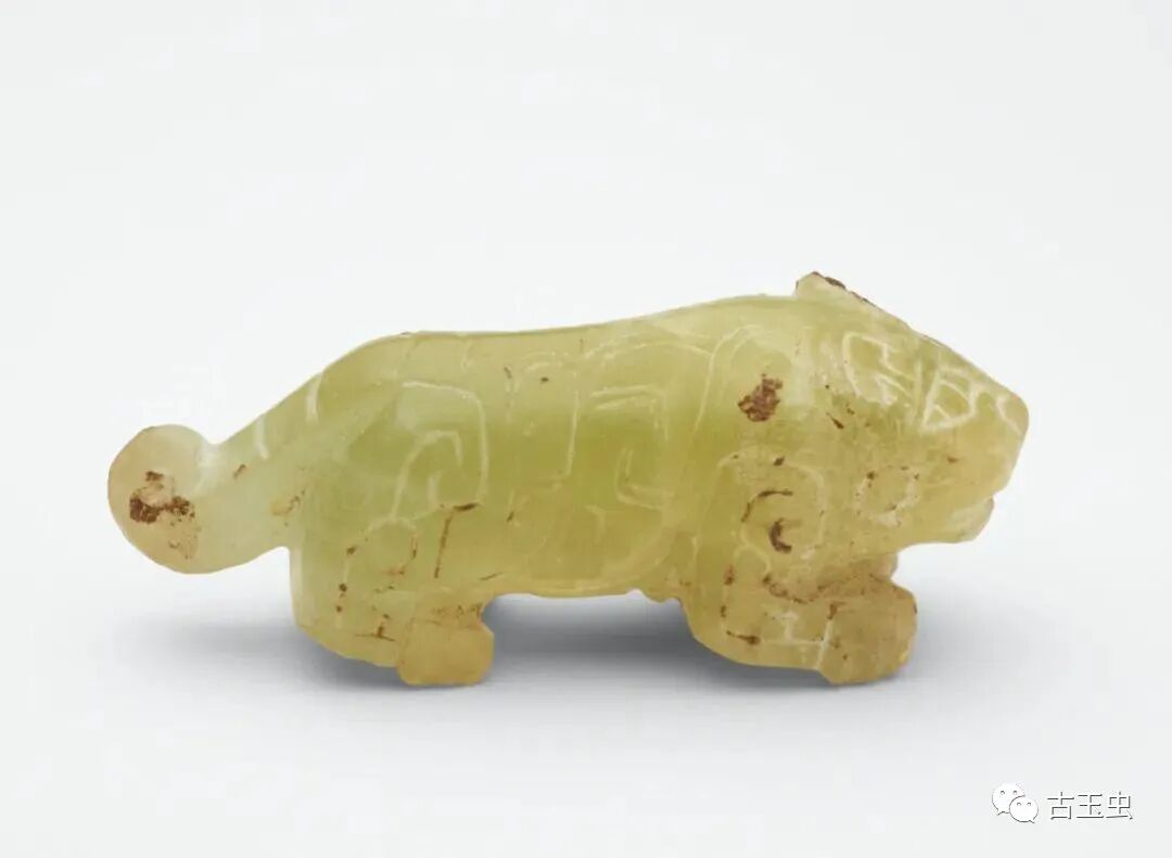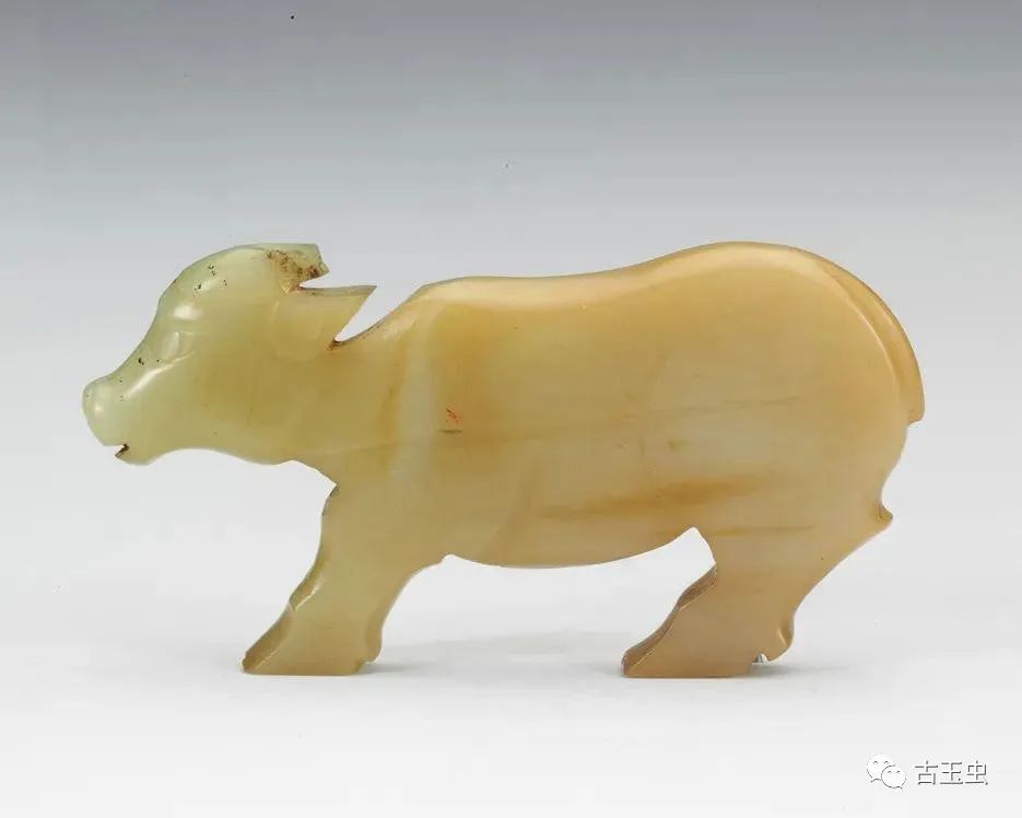 西周、春秋时期的动物玉佩逐渐向小型化发展,浮雕多而圆雕少,有鹿、虎、牛、羊、猪、马等,小鹿有的作回头状,非常生动。