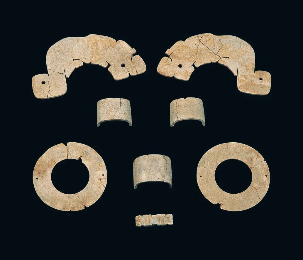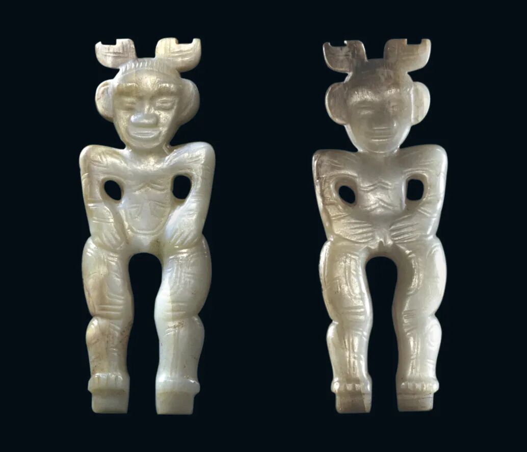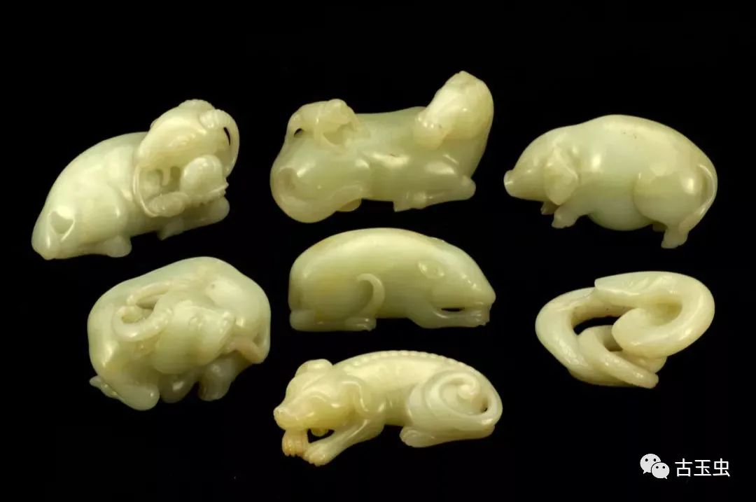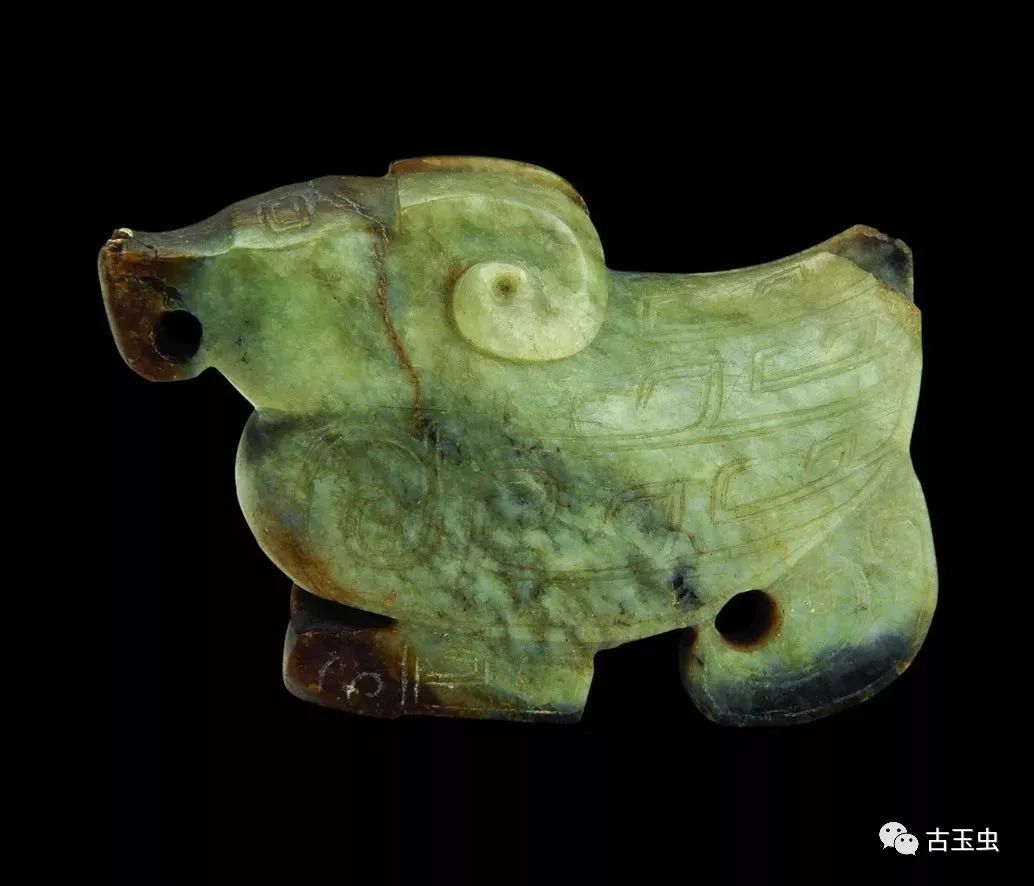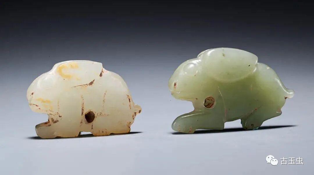 西周、春秋时期的动物玉佩逐渐向小型化发展,浮雕多而圆雕少,有鹿、虎、牛、羊、猪、马等,小鹿有的作回头状,非常生动。