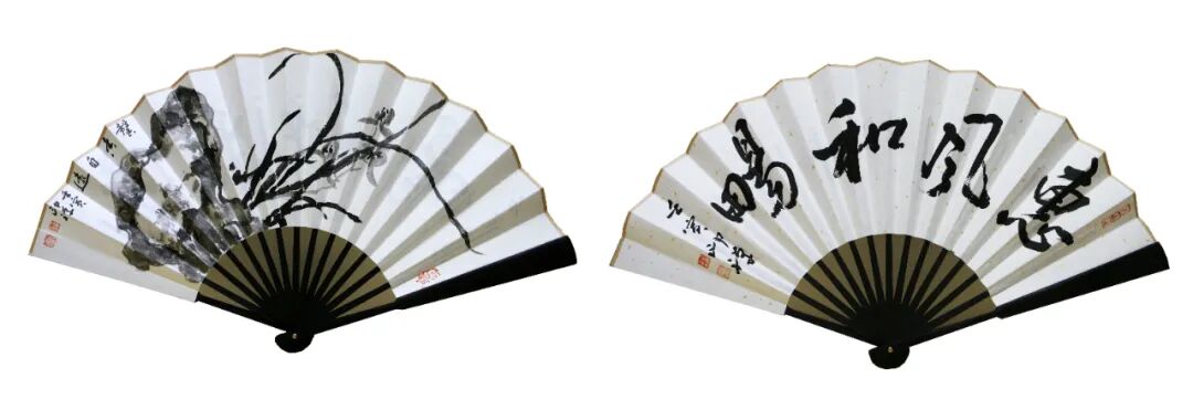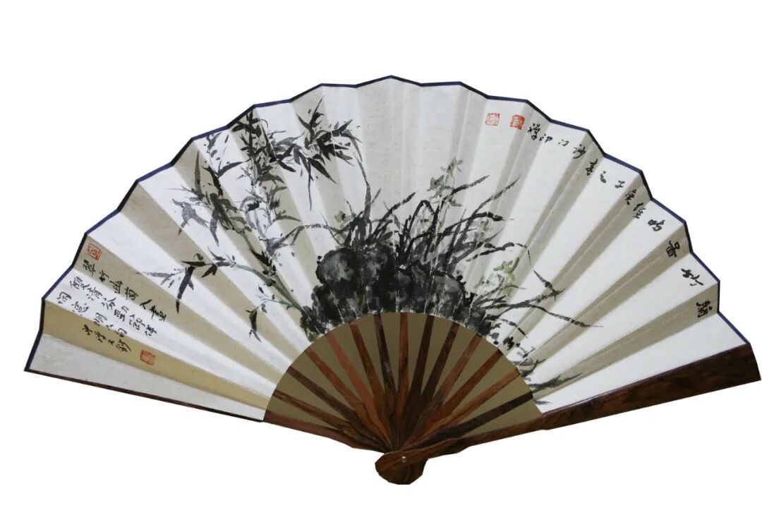 ▲印禅法师 花梨木精工折扇 国画 兰竹图