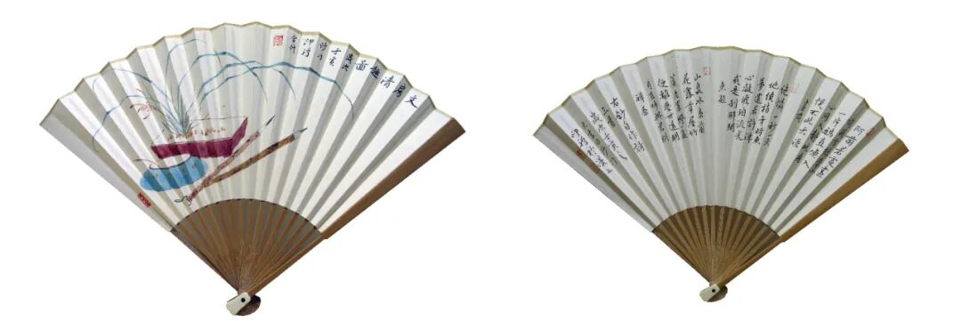 正面国画 文房清趣 背面书法小楷自作诗三首