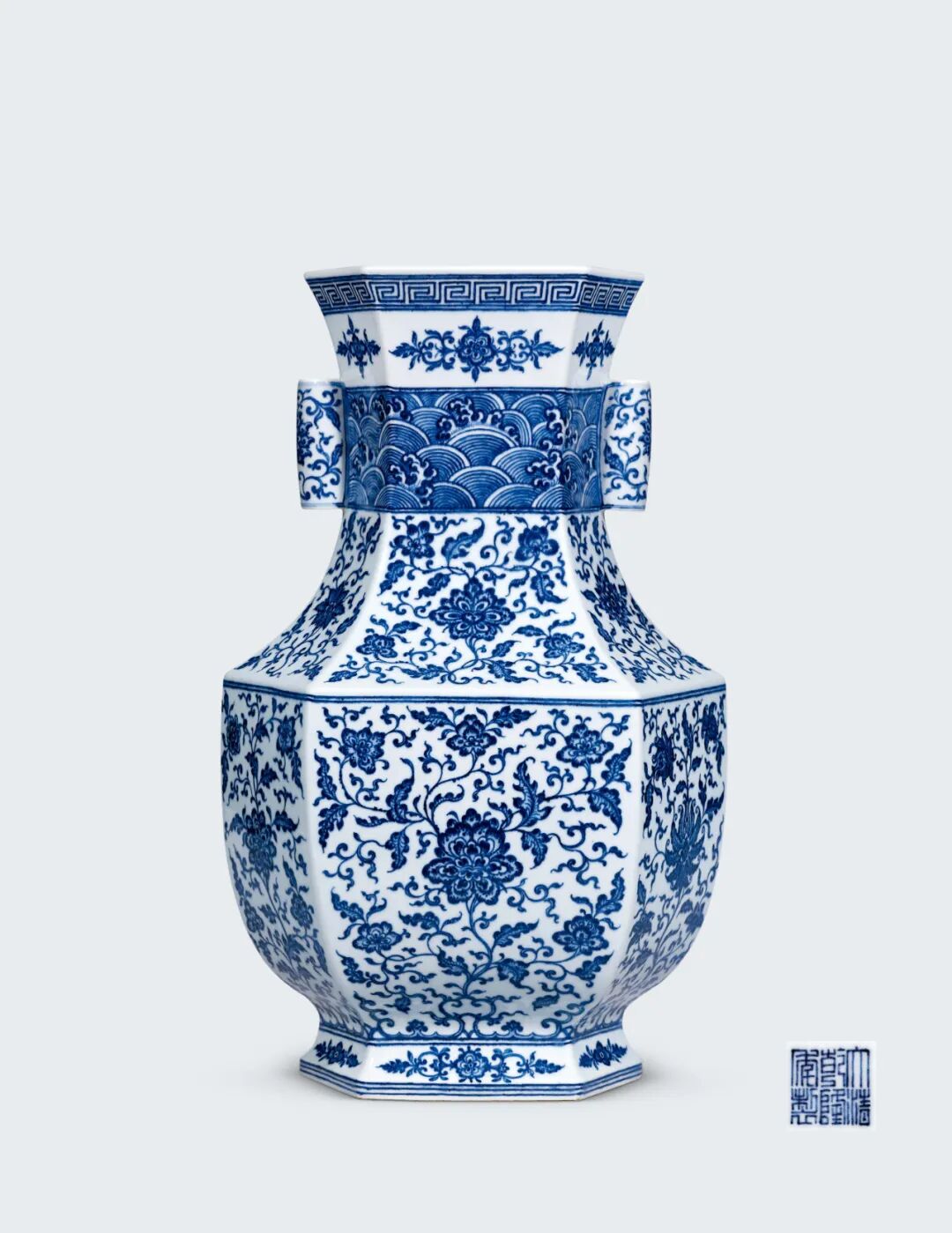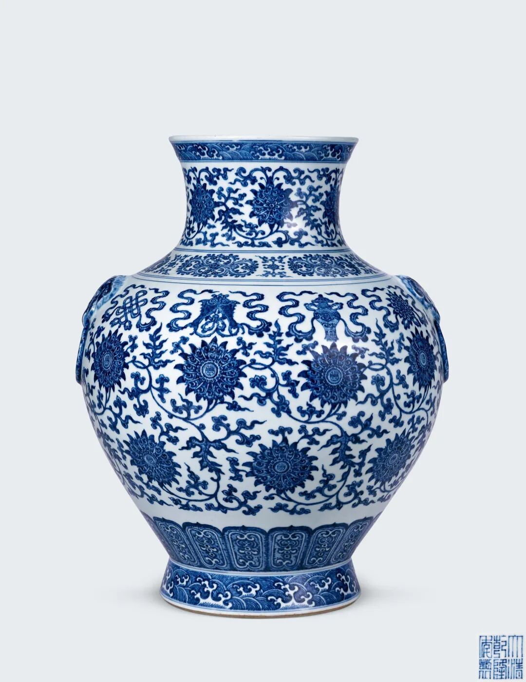 每一年的春秋大拍场上古董瓷器必不能少的就是青花的身影,不管是元青花还是明清青花,每逢现身,必能留下让人惊叹的高光成交!本轮内地春拍也为我们带来了不少青花佳品,可以说“青花”渐欲迷人眼!其中以嘉德这件清乾隆青花缠枝莲托八宝纹大铺首尊最为耀眼,更有不可多见的元青花高士图玉壶春瓶、清康熙青花团凤纹奁式叠盒等吸睛之器。