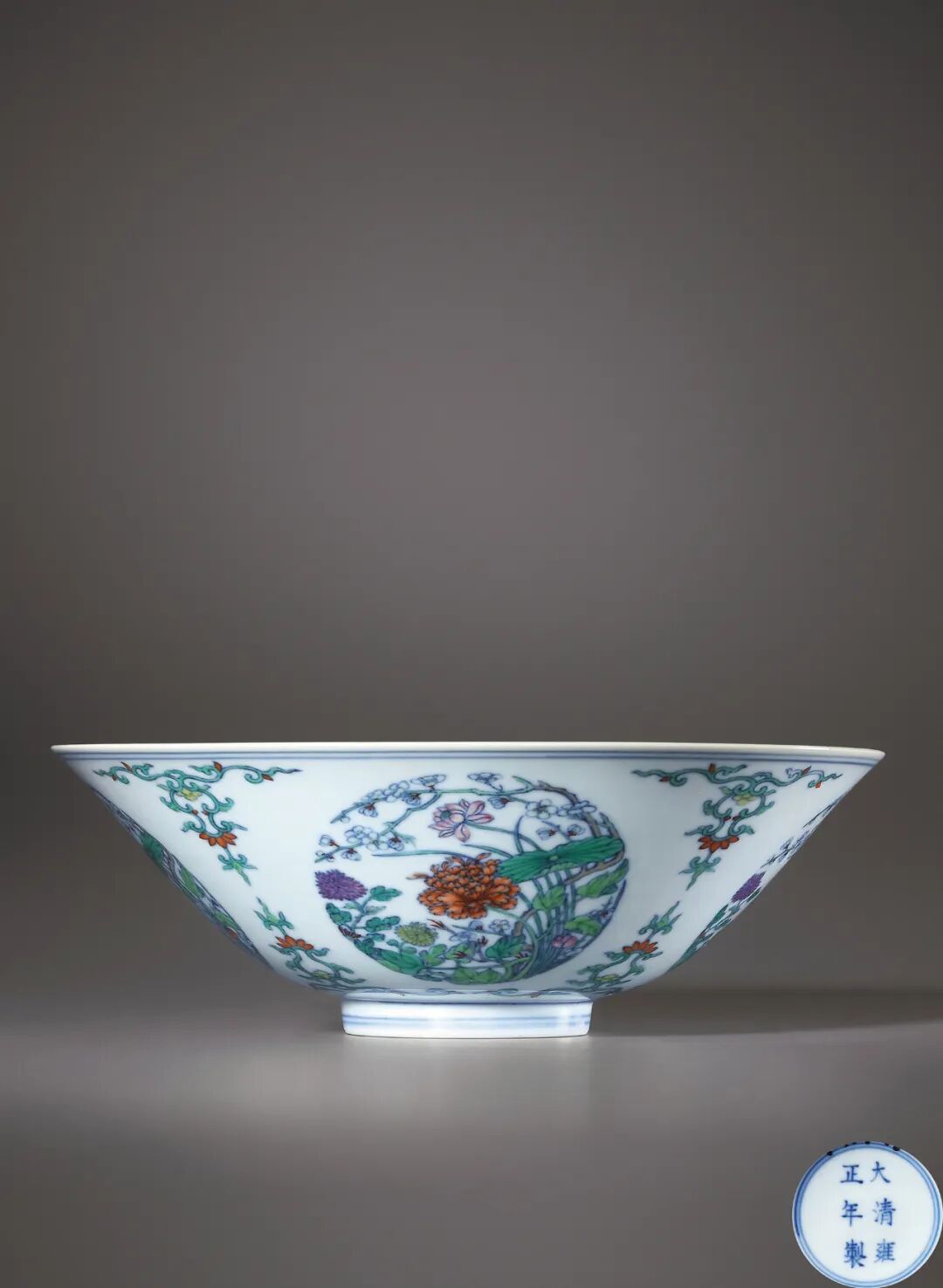 《御堂佳器:晚清宫廷帝后用瓷》,在斗彩瓷器中,明代成化斗彩器最为人们珍重,在明代就有“成窑一对酒杯值百金”的说法。其中一个原因就是烧造斗彩必须入窑两次,这就增加了烧制成本,同时破损率又高,所以一般只有官窑才会不计成本地制造。清代斗彩则以雍正、乾隆两代最出色,而且喜欢仿成化,但又独具特色。本轮春拍嘉德、大羿、中汉分别为我们带来了一些雍正、乾隆斗彩,我们一一来看下。天津文物,2013年11月22日,编号405