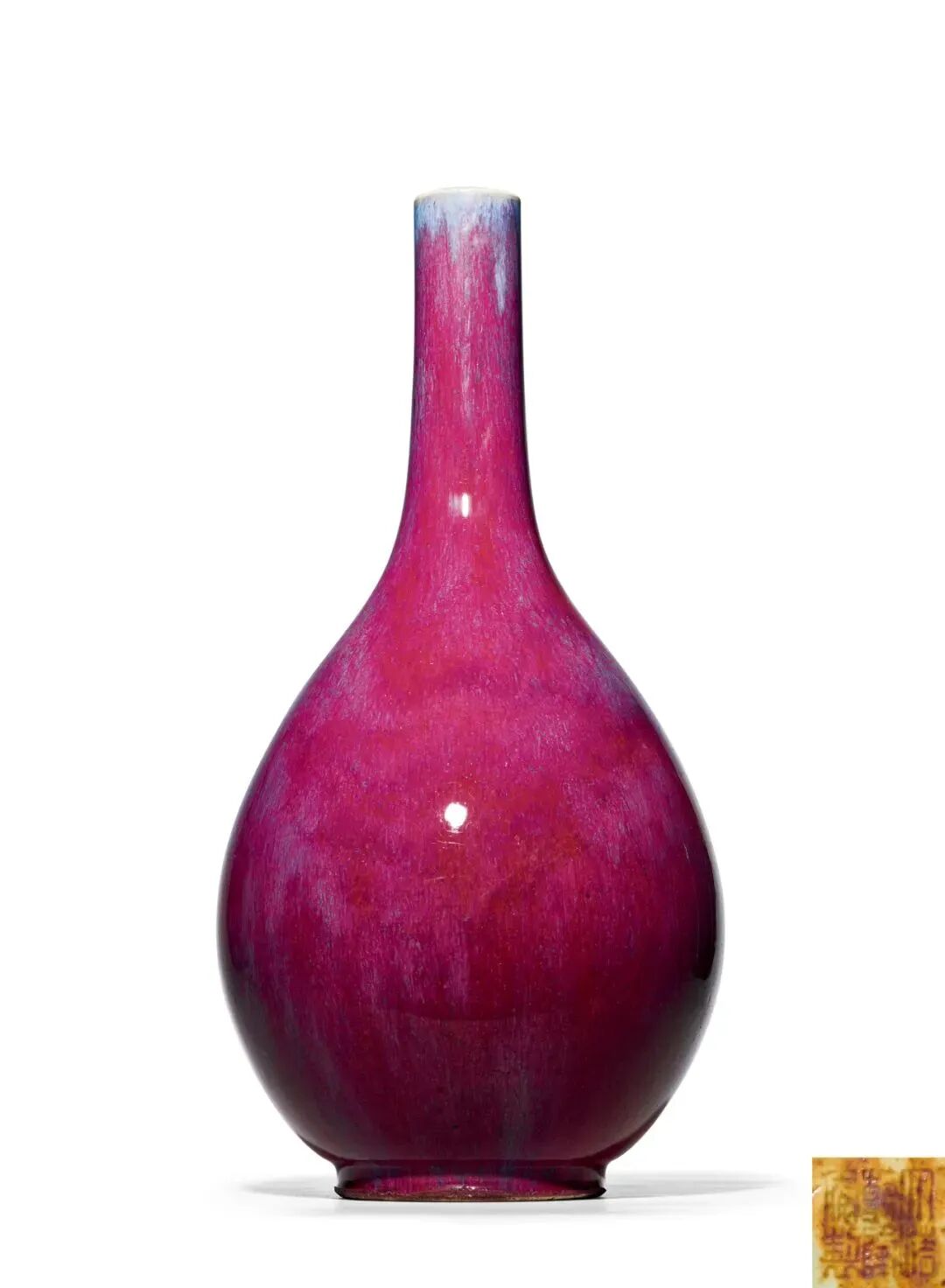 如果说粉彩是皇家富贵的彰显,单色釉则有高雅文士的气质。本轮春拍北京中汉为我们呈现清雍正-仿汝天青釉弦纹蒜头瓶,清秀圆润,雅气至极。北京大羿带来一件清乾隆-窑变釉长颈瓶,釉色万变,浑然天成,都是不可多得的精品清三代佳瓷。《中汉拍卖十年精赏》,中汉拍卖,2020年,页82-83,图112香港中文大学文物馆,2005年,页74-75,图20;上海科学技术出版社,2010,页215,图194;![]()