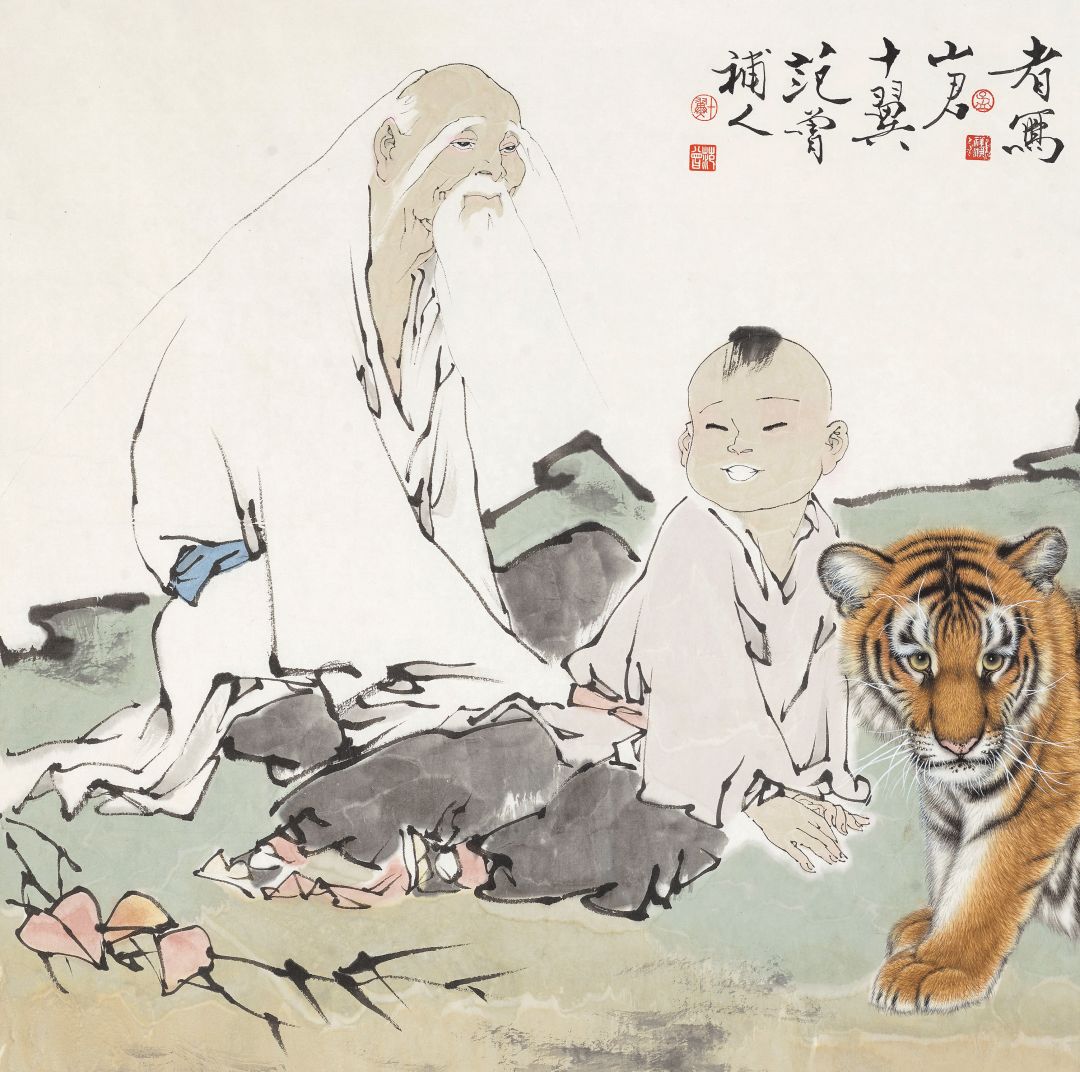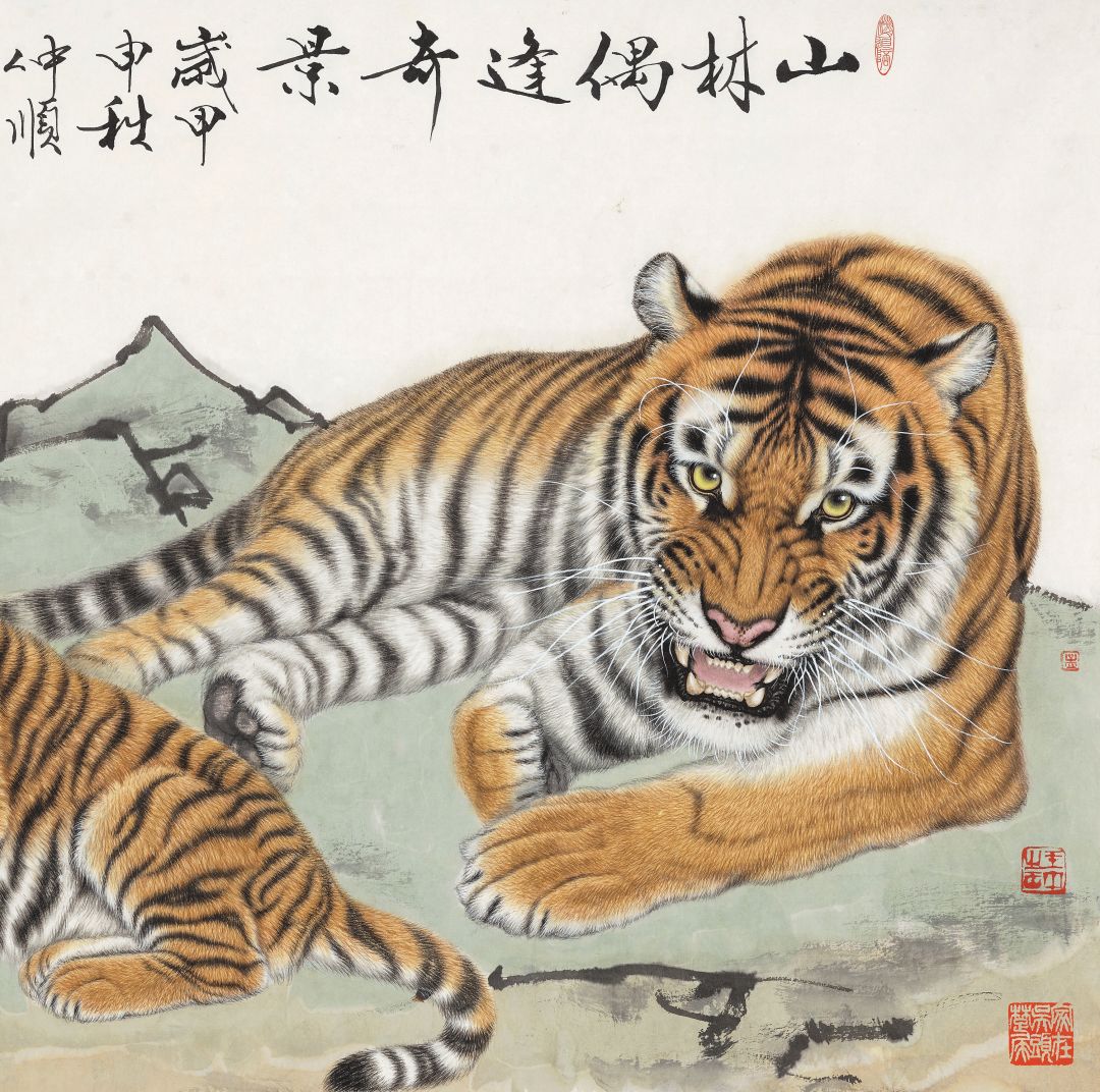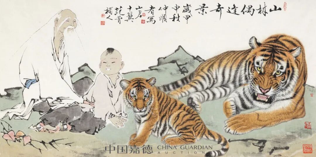 题识:山林偶逢奇景。岁甲申秋仲顺者写。山君十翼范曾补之。