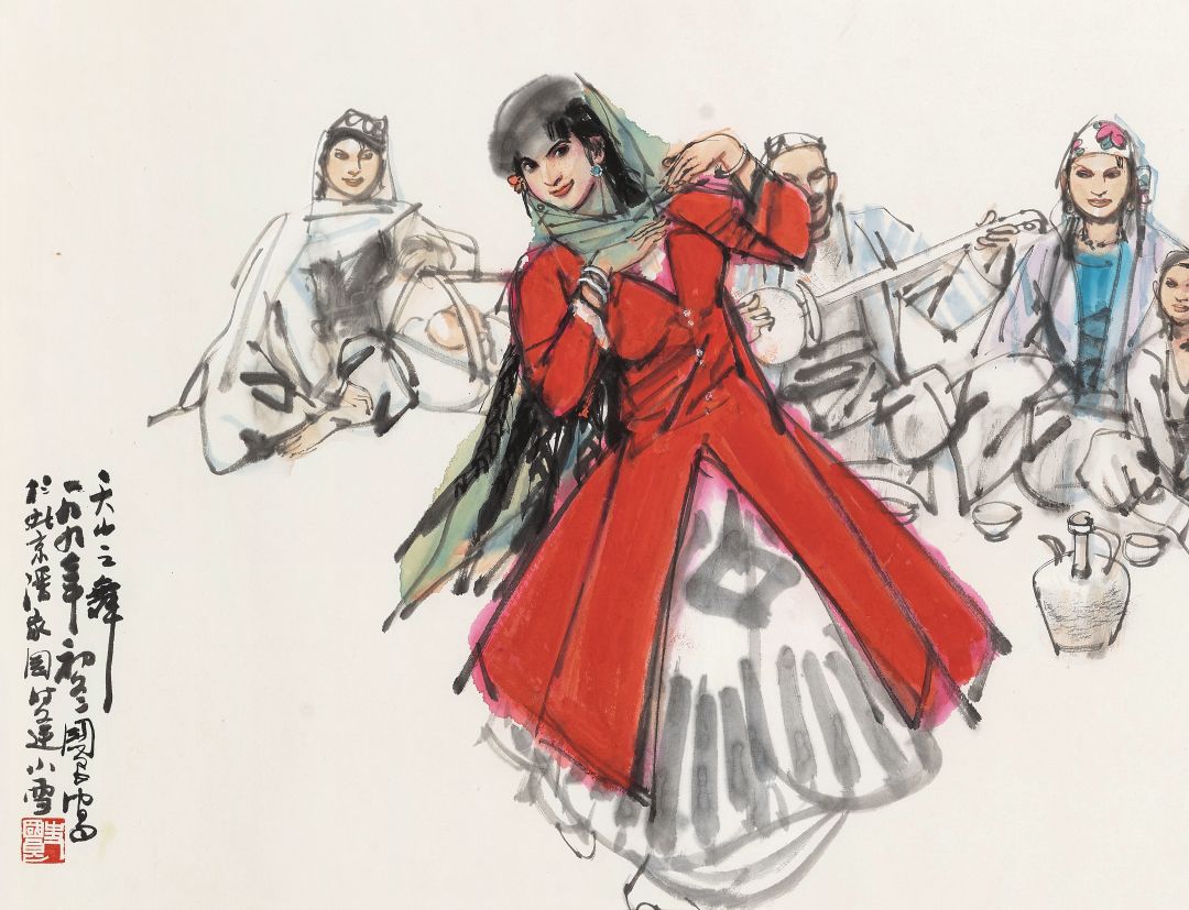 题识:天山之舞。一九九九年初冬国良写于北京潘家园,日逢小雪。